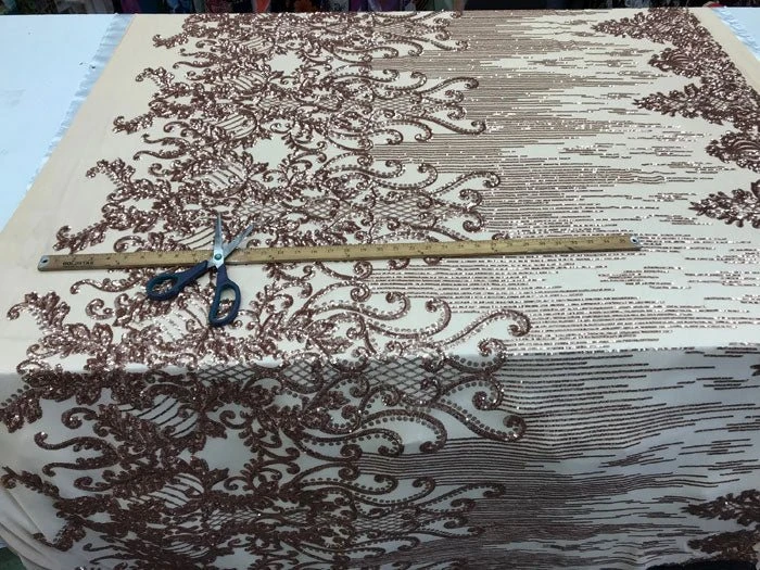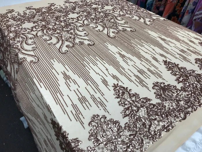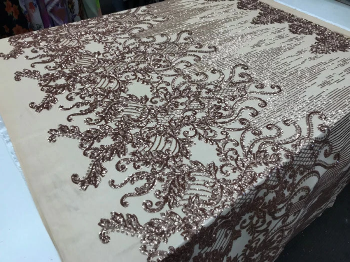 Blush Luxury Design Embroidered 4 Way Stretch Sequin Fabric By The Yard (58″ Wide)