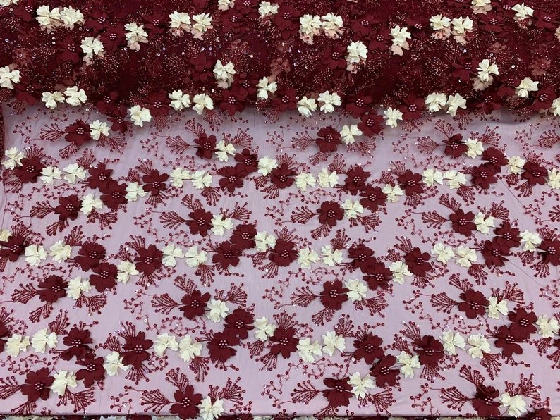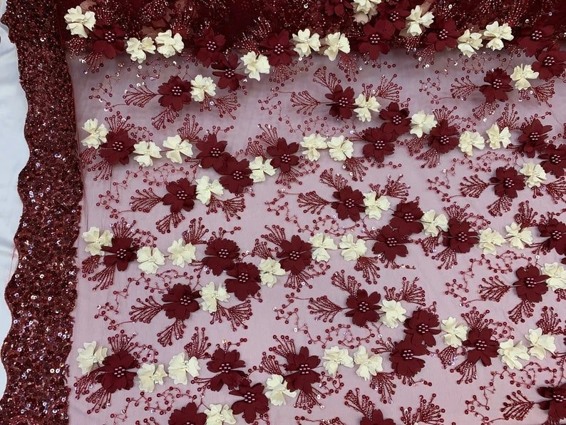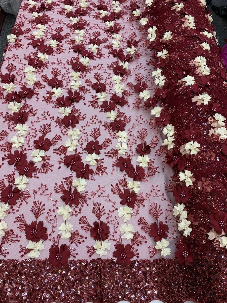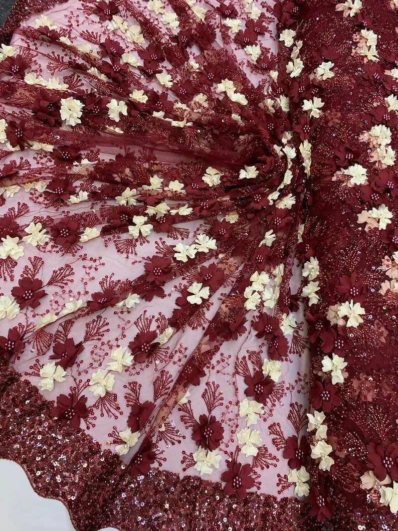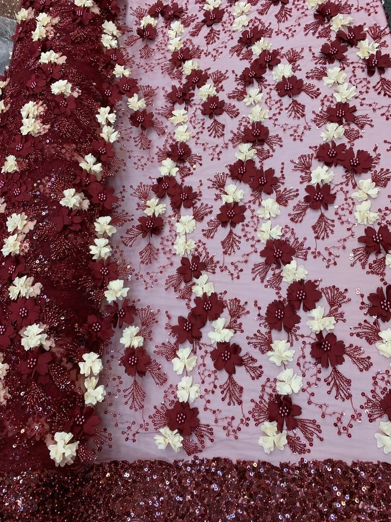 Express your own style with Red Bead Tulle Lace Fabric. It’s a bold statement outfit piece that uplifts the entire attire. It’s embroidered with exquisite beads and sequins to make it gorgeous, and its quality never goes out of style.