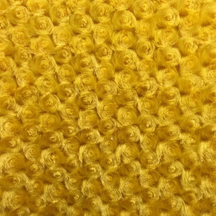 Features of Canary Yellow Minky Rosebud Fabric by yard