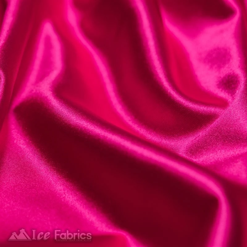 IceFabrics offers Casino Shiny Hot Pink Spandex 4 Way Stretch Satin Fabric in variant colors and unique size.
