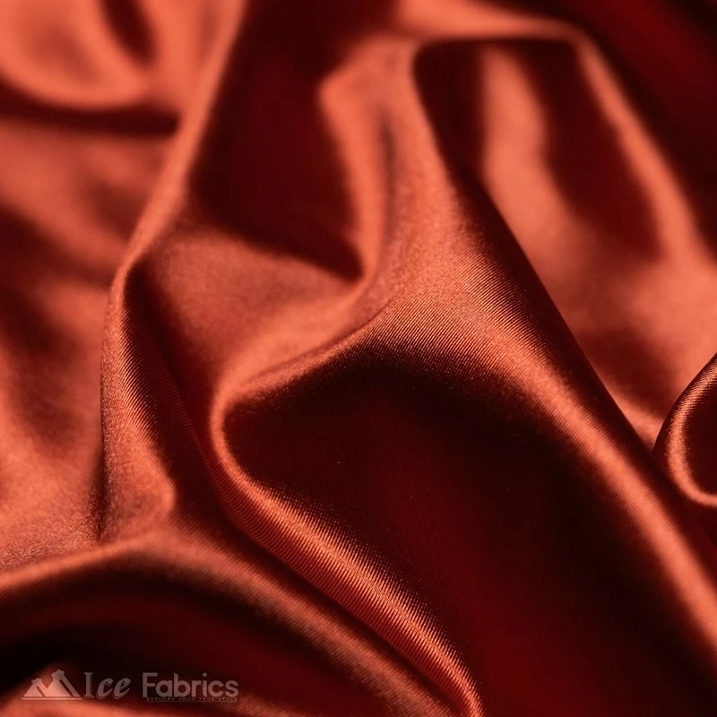 IceFabrics offers Casino Shiny Rust Spandex 4 Way Stretch Satin Fabric in variant colors and unique size.