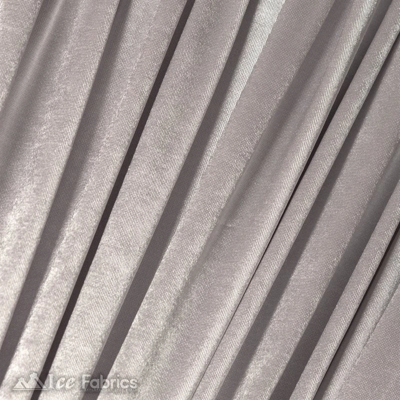 IceFabrics offers Casino Shiny Silver Spandex 4 Way Stretch Satin Fabric in variant colors and unique size.