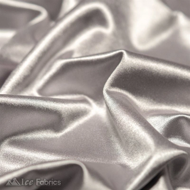 Silver Casino Shiny Spandex 4 Way Stretch Satin Fabric