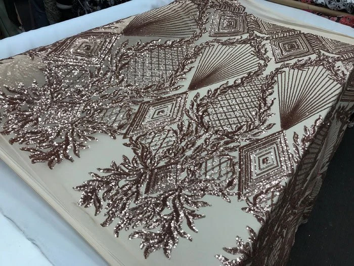 Champagne High Embroidered Sequin Mesh Lace Stretch Fabric By The Yard