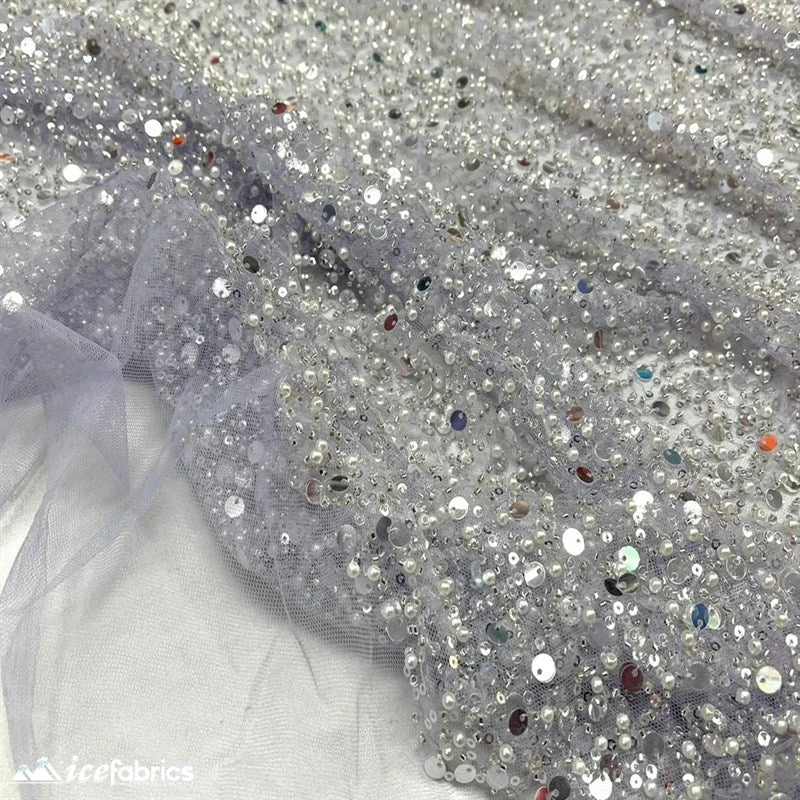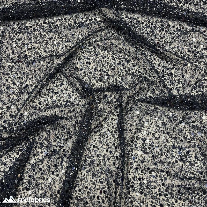 IceFabrics offers Handmade Sequin Beaded Embroidery on Lace Fabric in unique size and variant colors.