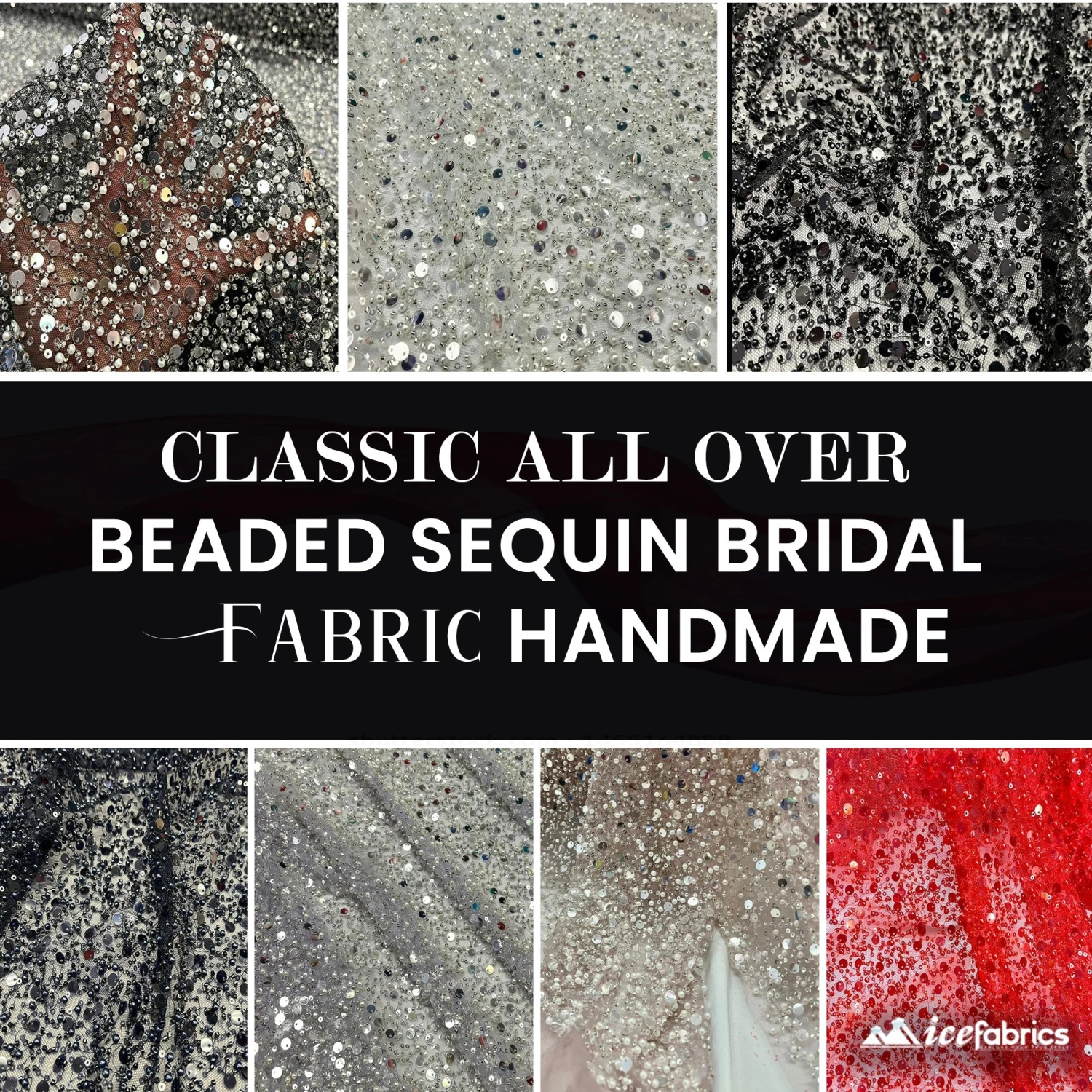 Classic All Over Handmade Beaded Sequin Bridal Fabric