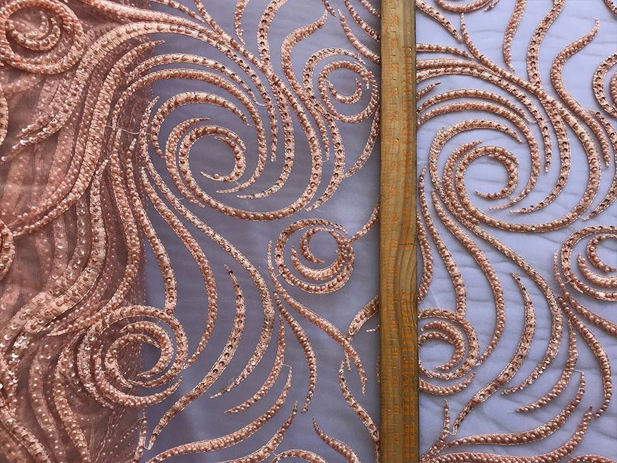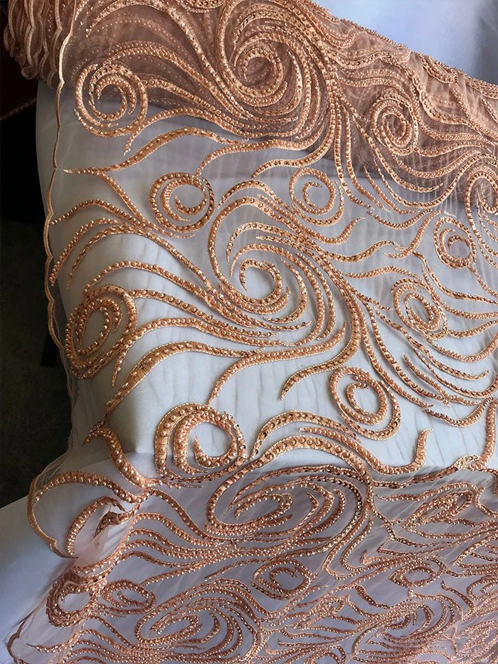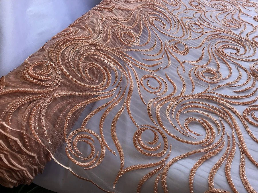 - It is easy to wash and never turns the color. Our beaded sequins beaded wedding mesh laces are made by very soft material including Crepe Back Satins, C Satins, Silky Lining, Poplin, Tulle, Cotton Broadcloth, Brocades, Damasks, Jacquards, Upholstery, Chenille, Sheer Voile, Stretch and Micro Velvet, Sequins, accompaniments and more.