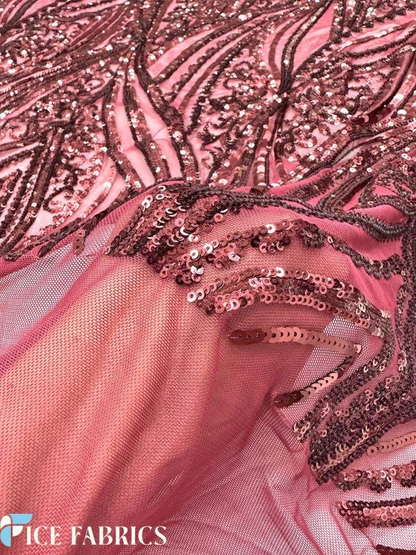 Add elegance and sparkle to your designs with the Damask Stretch Sequin Fabric on Mesh. This high-quality sequin fabric blends style and comfort to create stunning results for any occasion. Whether you’re crafting an evening gown, a party dress, or decorative items, this fabric provides both beauty and functionality.