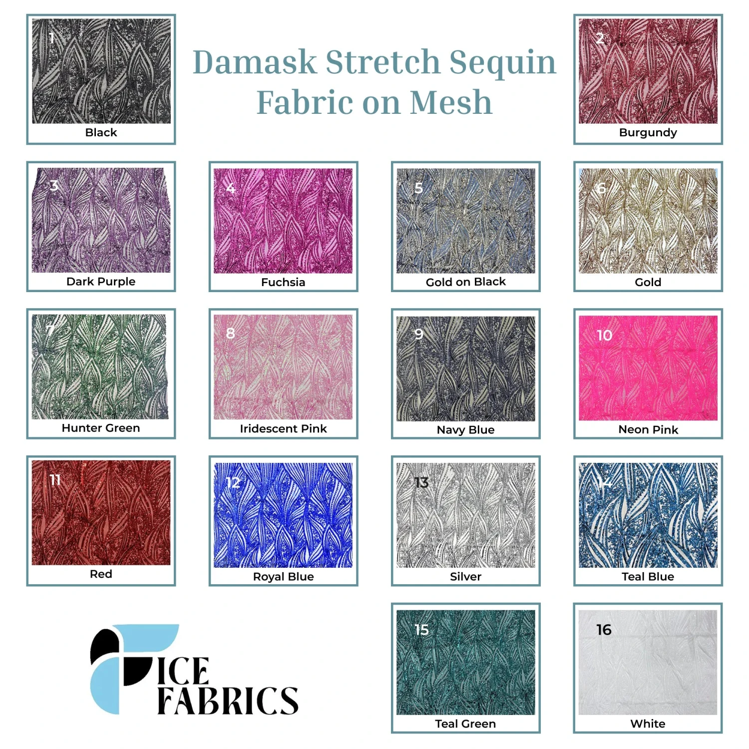 At Ice Fabrics, we offer premium fabrics for all your creative needs. Shop our Damask Stretch Sequin Fabric by the yard today to bring your projects to life. Pair it with options like Minky Fabric by the Yard, Satin Fabric, Lace Fabric, or Chiffon Fabric for breathtaking results.
