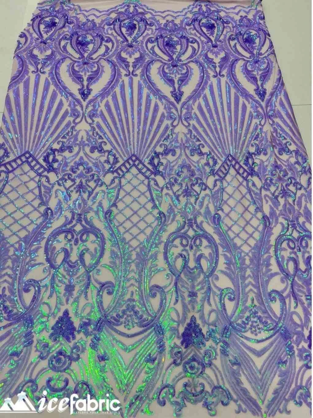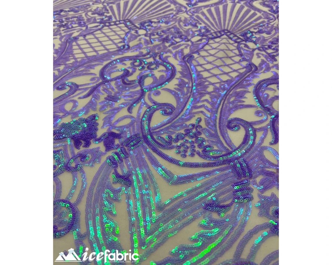 IceFabrics offers Lavender Diba Geometric Stretch Sequin Embroidery Fabric by the yard in unique size and variant colors.