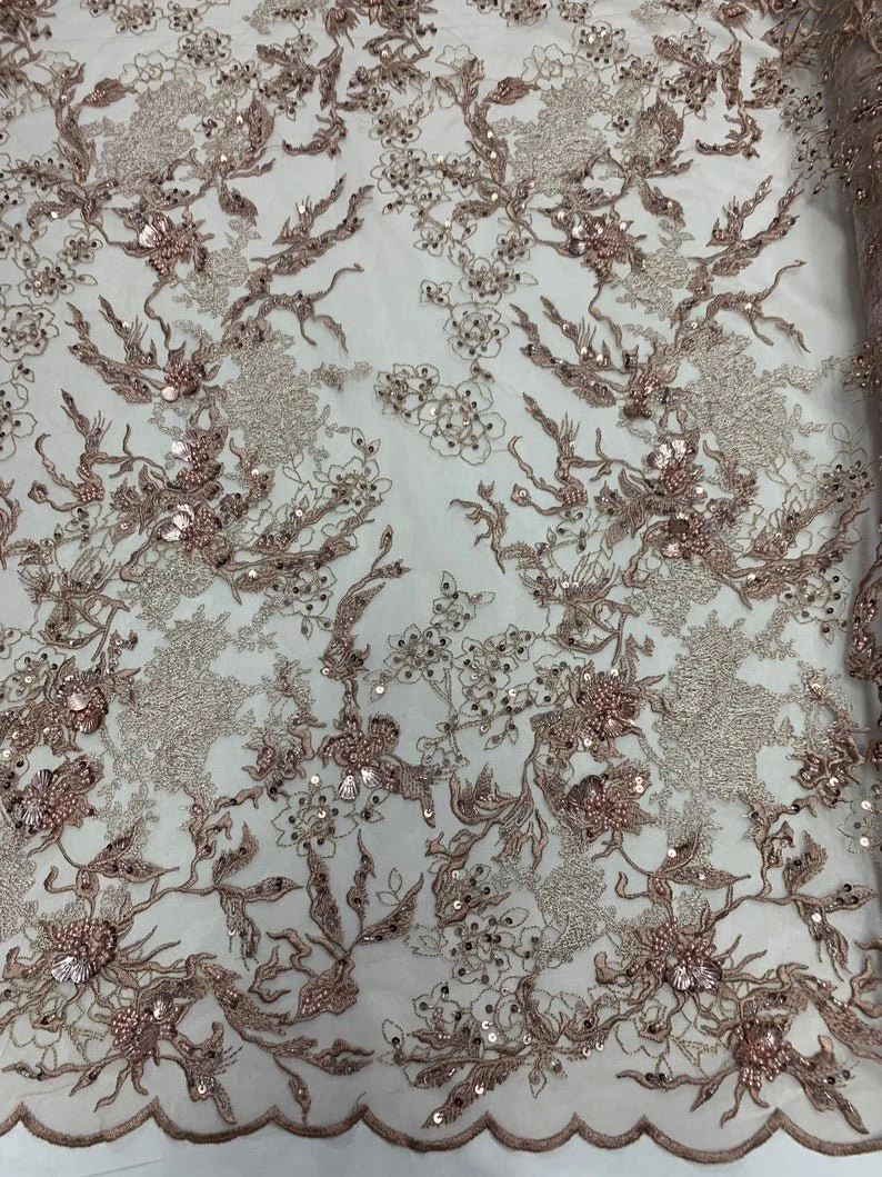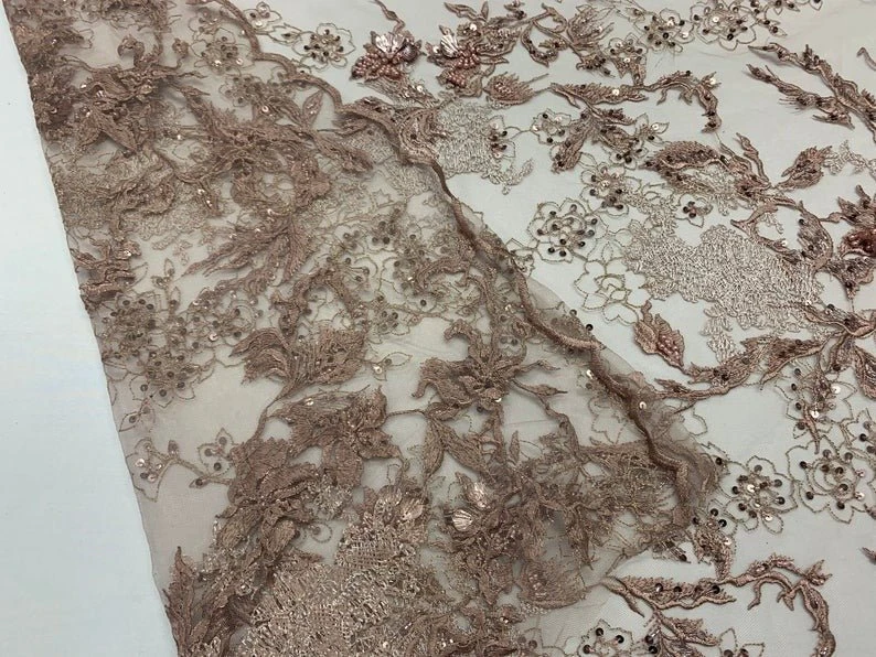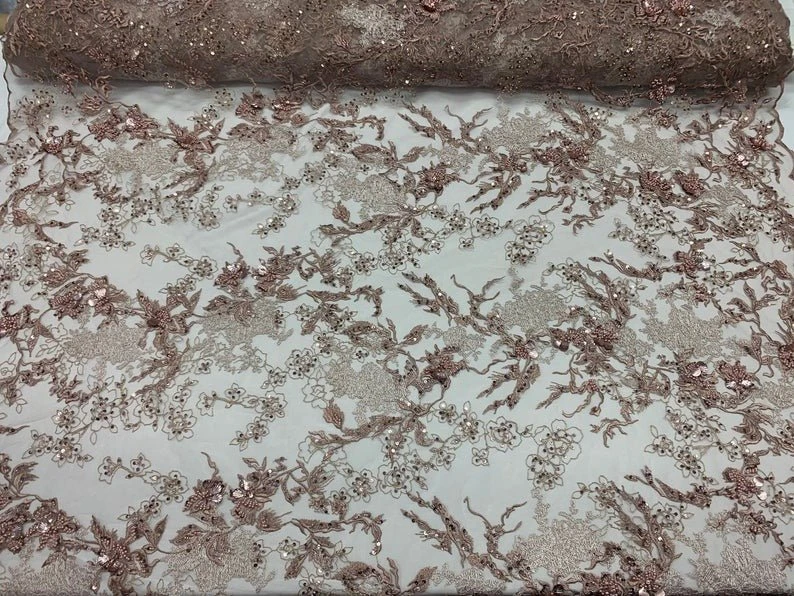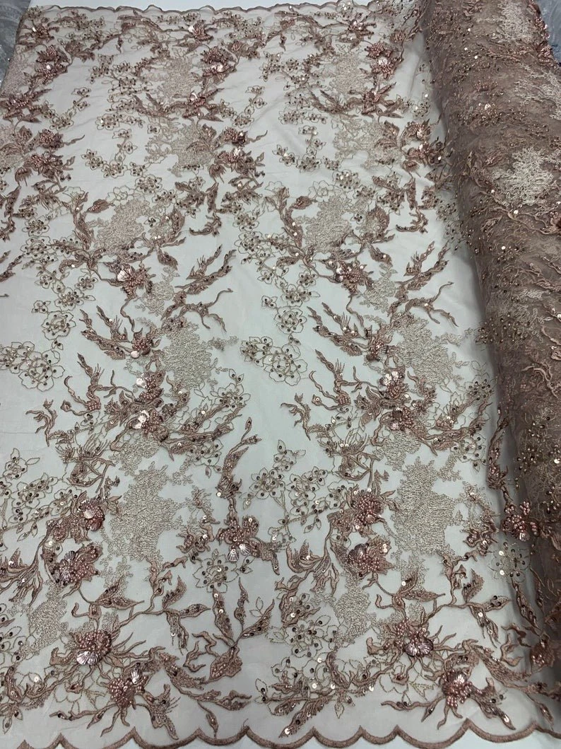 Look marvelous and capture the attention of everyone with this beautiful Dusty Rose Sequin Floral Bridal Fabric Beaded Fabric 3D Lace Fabric that will make your look sparkle.