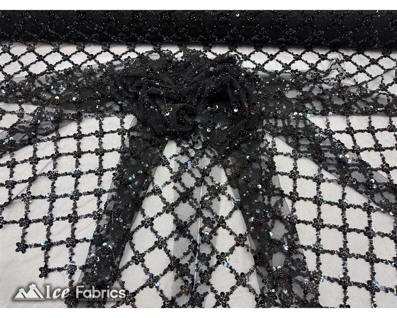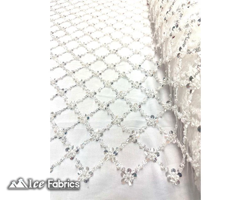 IceFabrics offers “Embroidered Beaded Fabric Geometric Sequin Lace” in unique size and variant colors.