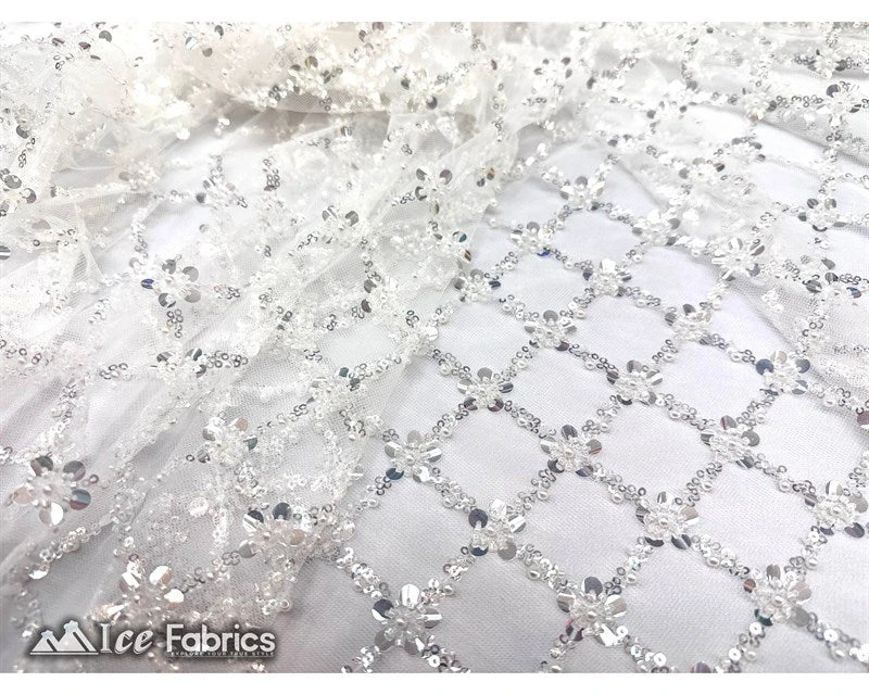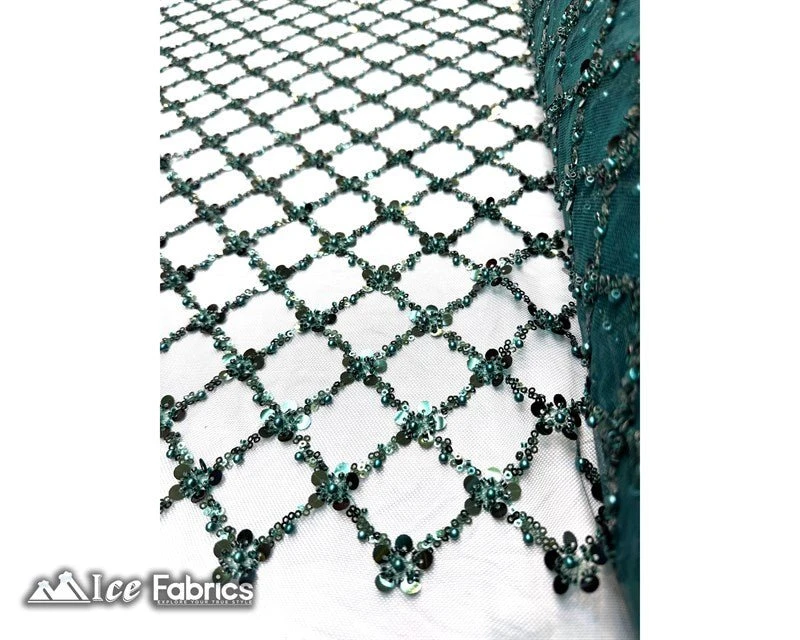 Geometric Beaded Sequin Embroidered Lace Fabric