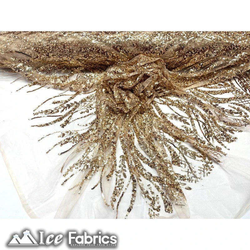 Embroidered Beaded Sequin Fabric is the perfect selection for designing maxi dresses, skirts, ball gowns, prom attire, wedding dresses, and even tablecloths to add a touch of glam to your evening look.