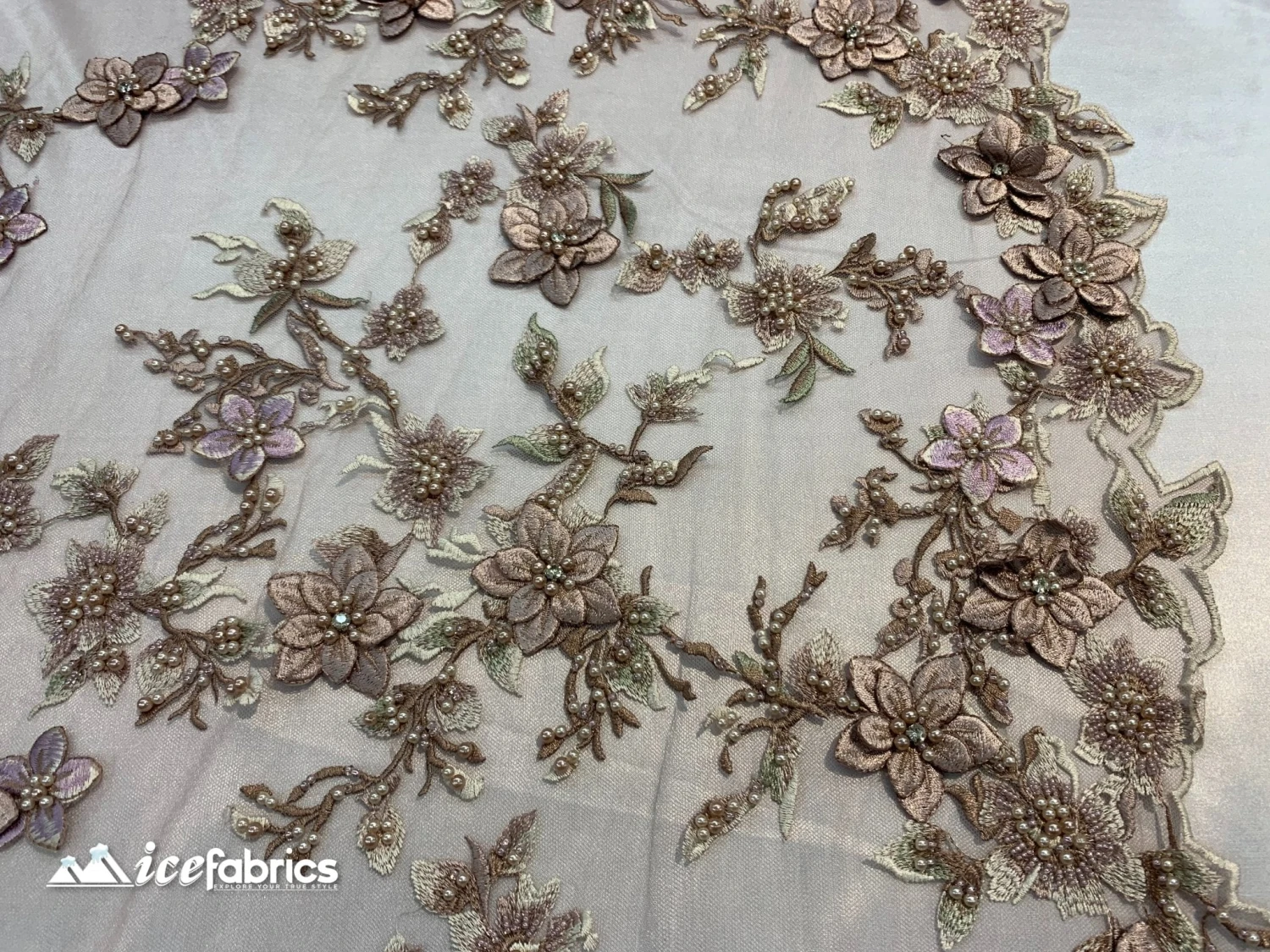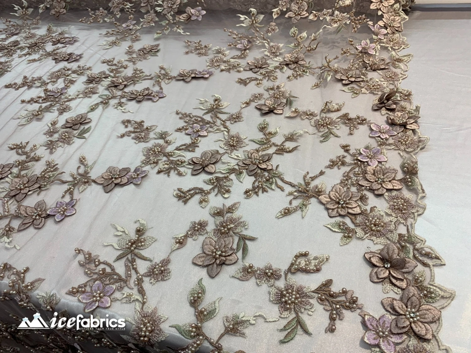 Luxury Beaded Fabric By The Yard_ 3D Flowers Lace Fabric On a Mesh (Red) Embroidered Floral Fabric/ Bridal Fabric