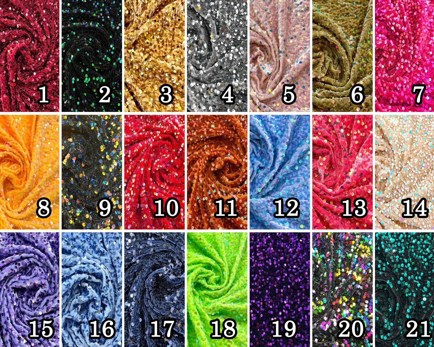 Are you looking for a dress with a splash of color and sparkle? We have it all! 2 Way Stretch Velvet Sequins fabric will provide you with a standout look. This fun and glittery Sequin Fabric is the best way to stand out. They can be used for weddings, fashion events, and night-outs.