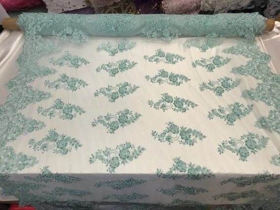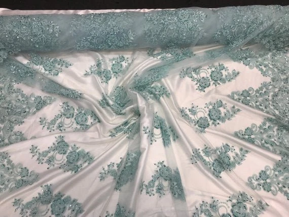 These beautiful flowers lace its hand beaded with sequins, and glass beads on a mesh. The lace can be used for all different purposes such as clothing, jackets, dresses, skirts, applications, table covers, runners, and much more. We have a large selection of Mesh Laces to explore the new trends…