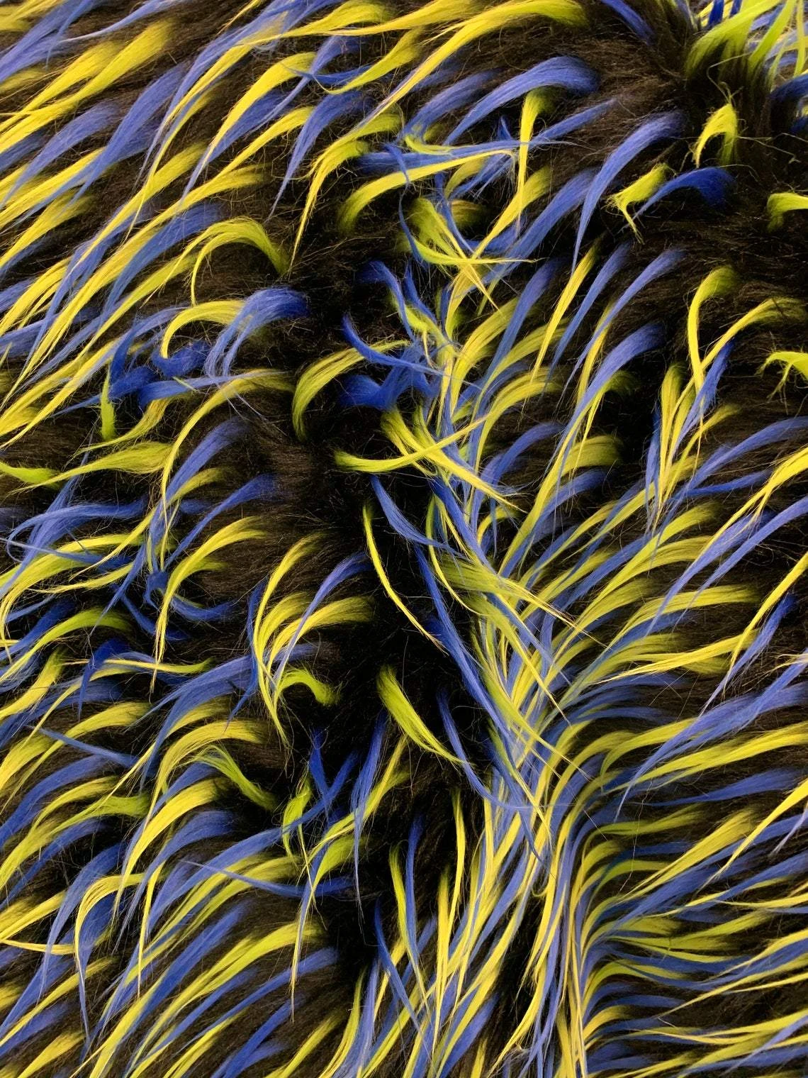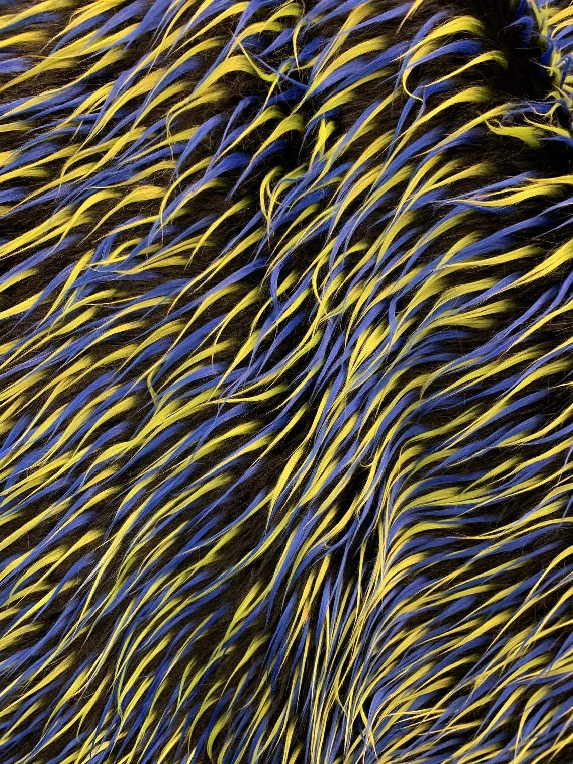 Key Features “Yellow, Black, and Purple 3 Tone Long Pile Design Fake Fur 60″ wide Fabric”