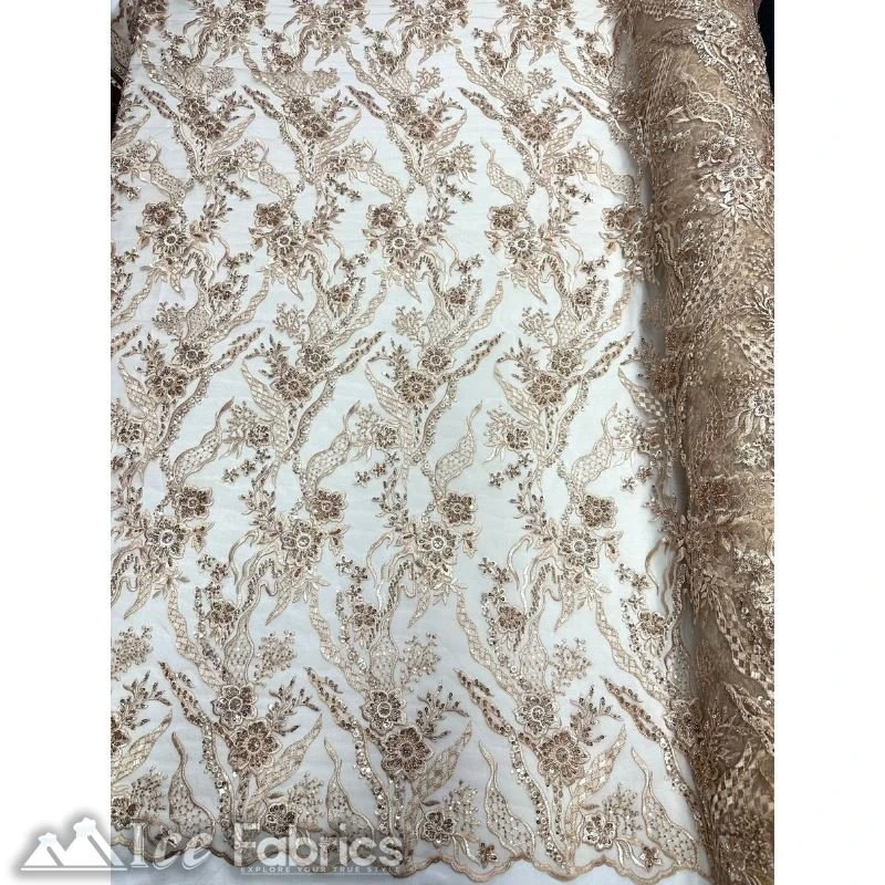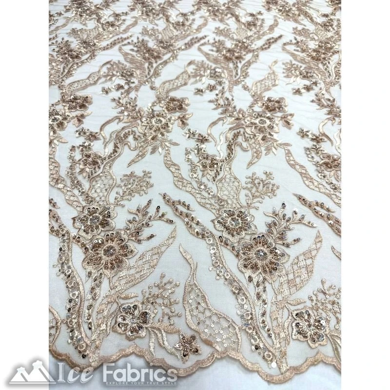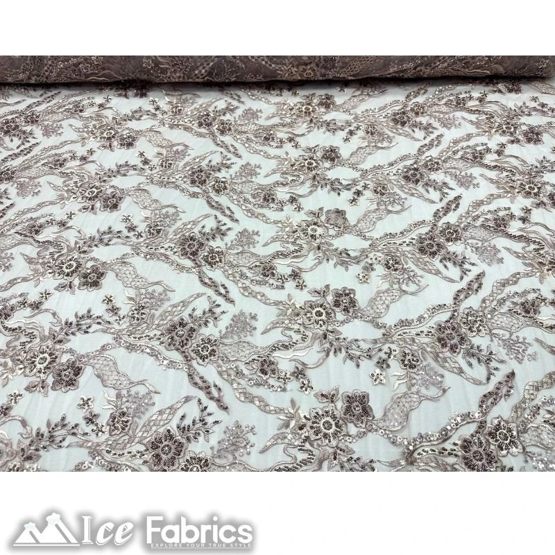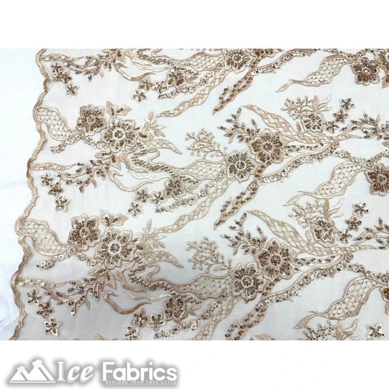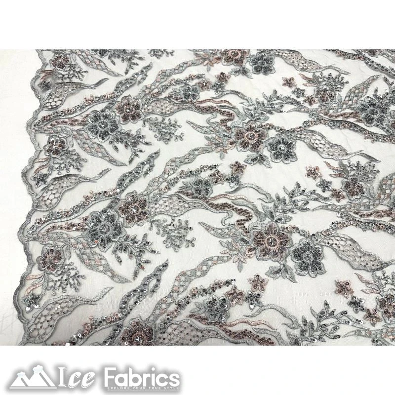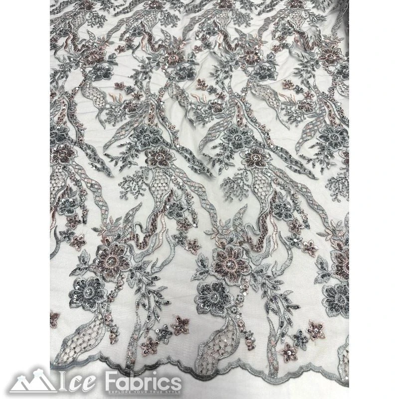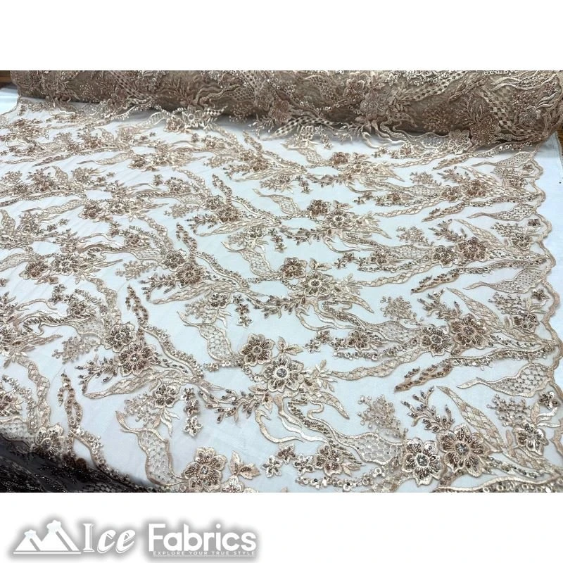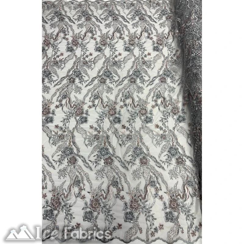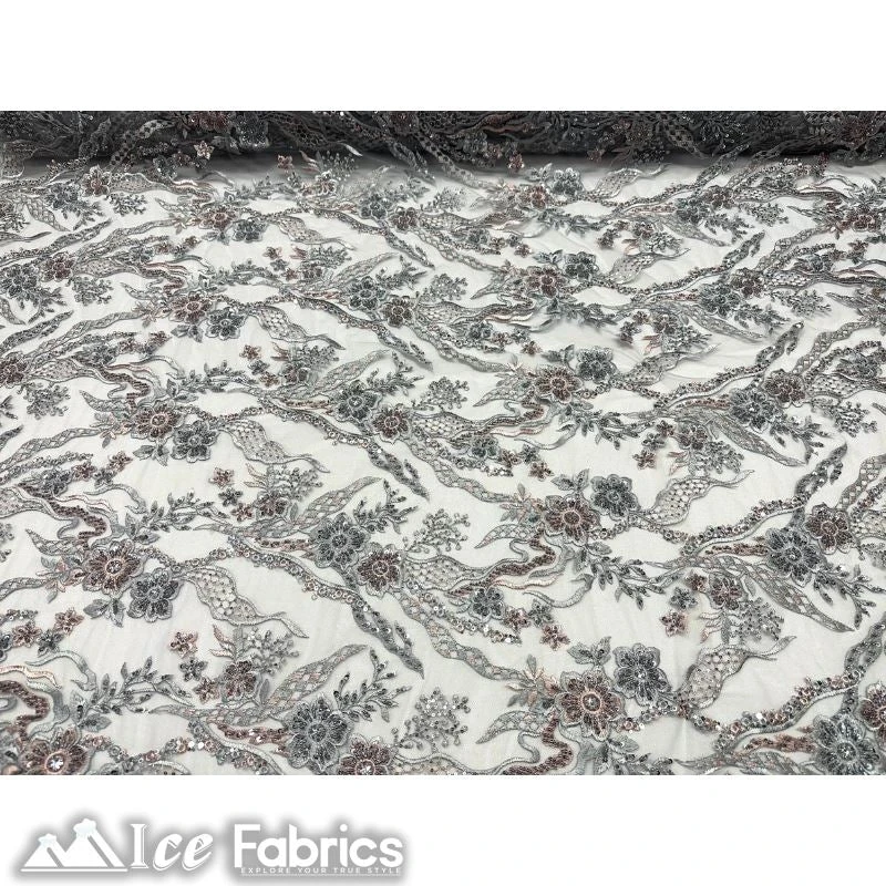 IceFabrics offers Beaded Sequin Floral Design Embroidered Mesh Fabric in unique size and variant colors.
