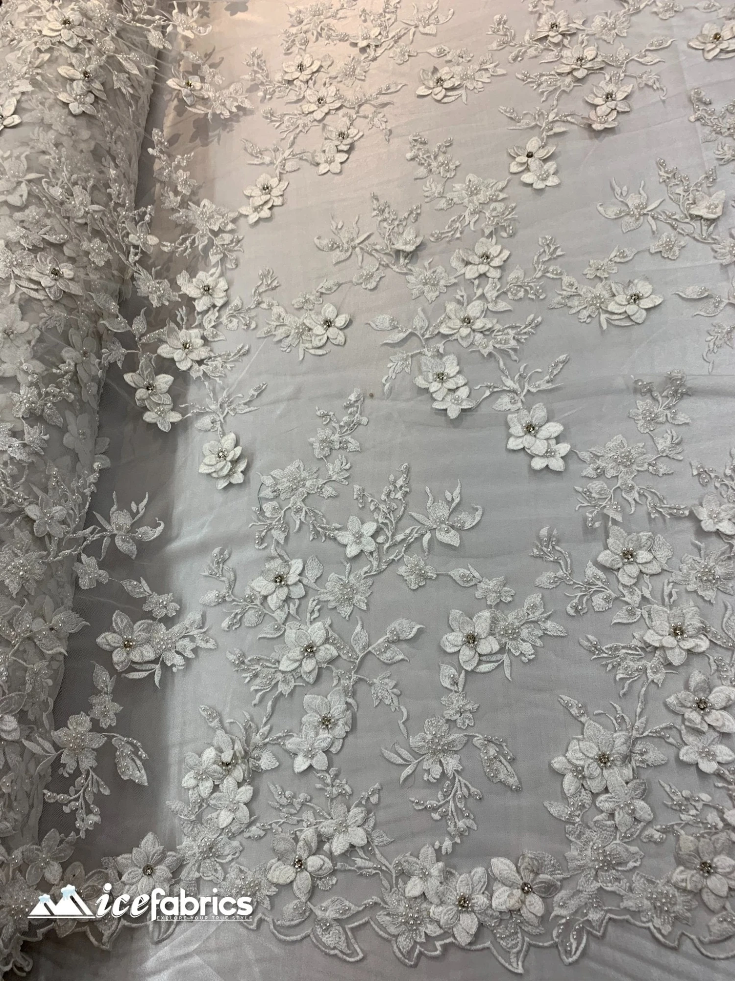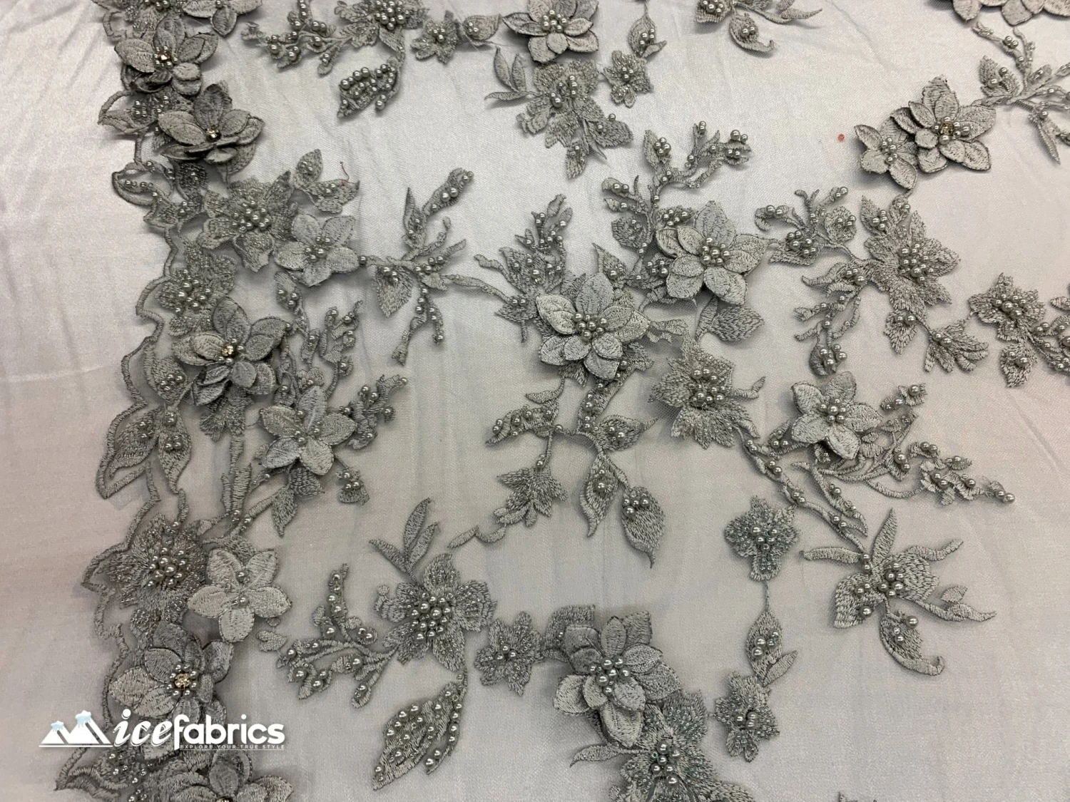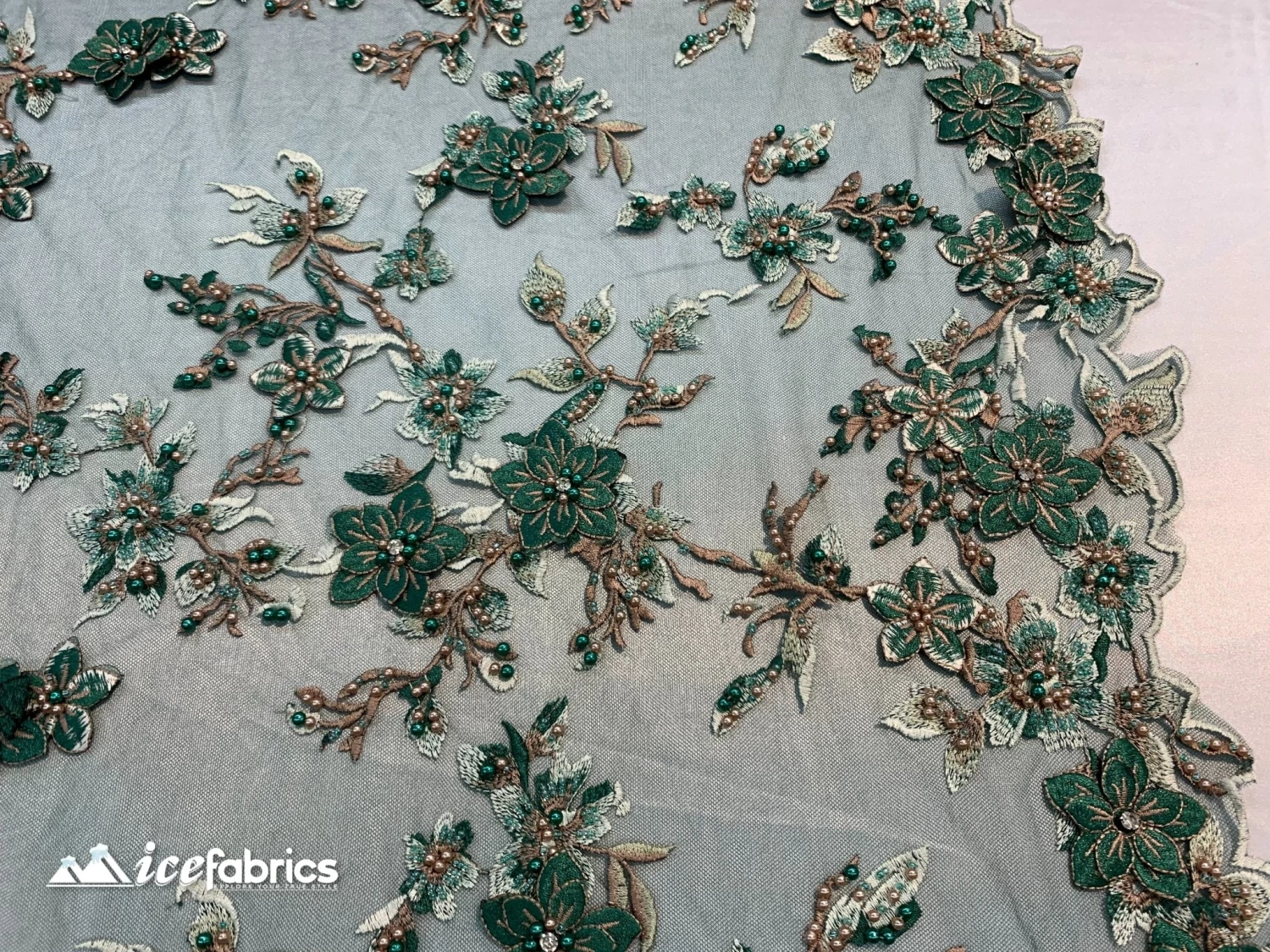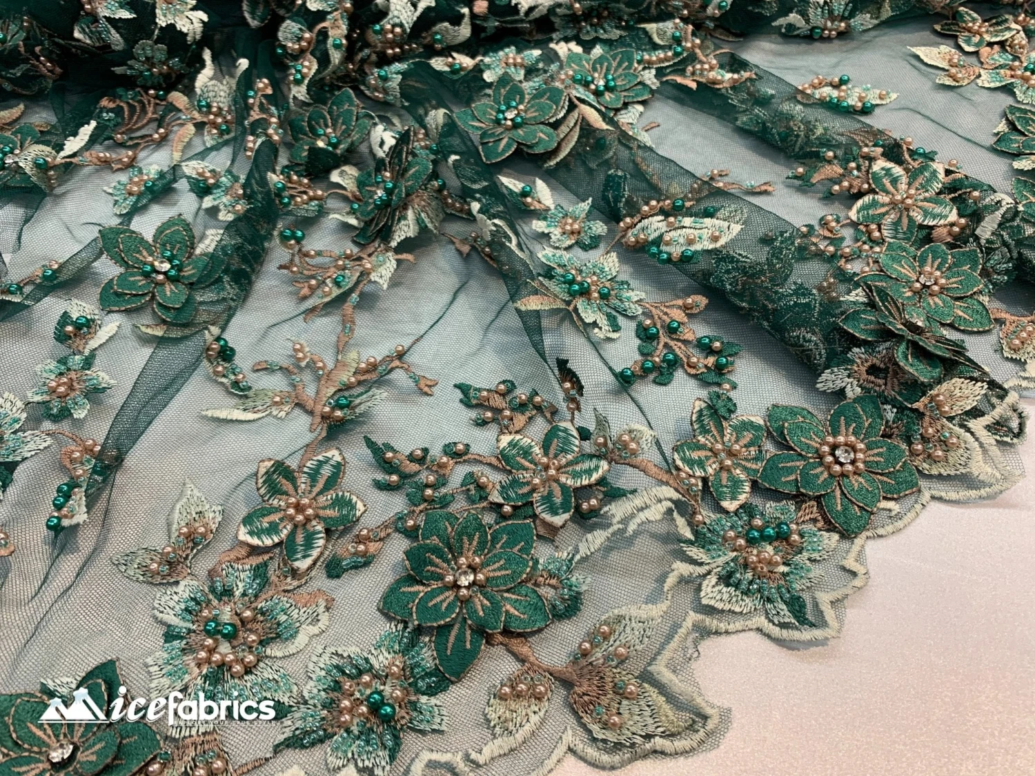 Luxury Beaded Fabric By The Yard_ 3D Flowers Lace Fabric On a Mesh (Red) Embroidered Floral Fabric/ Bridal Fabric