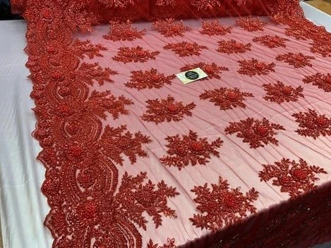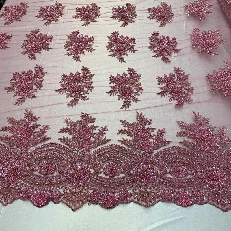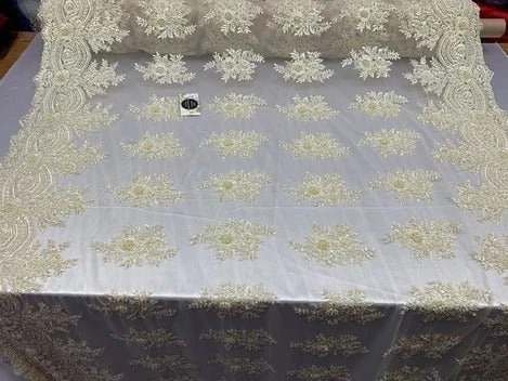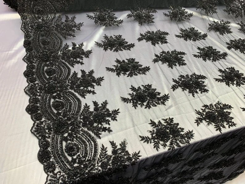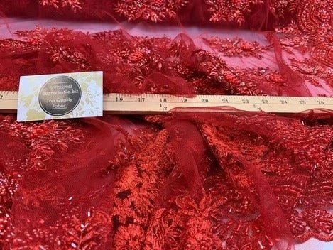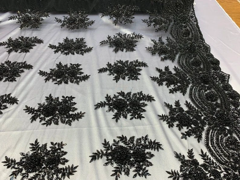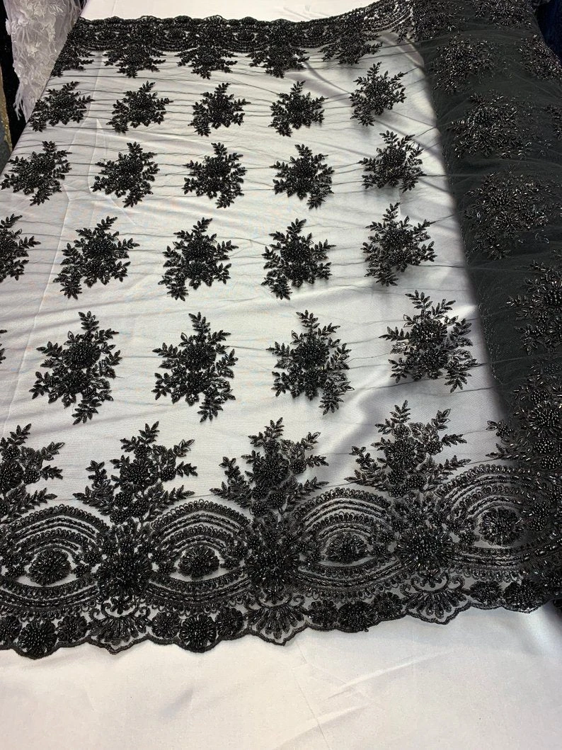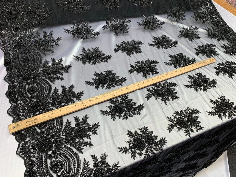 offers Floral Flower Heavy Glass Hand Beaded Embroidered Mesh Lace Fabric in unique size and variant colors.