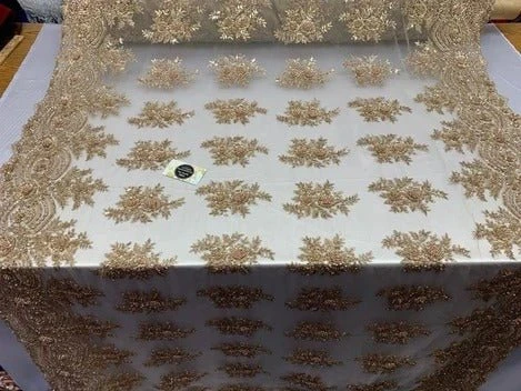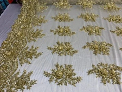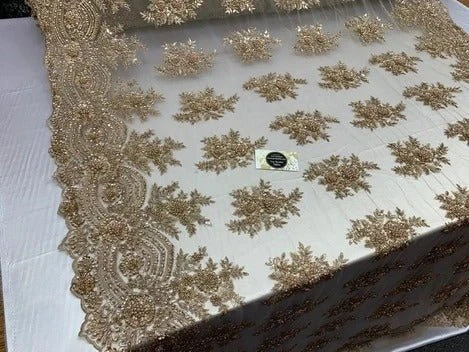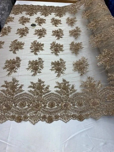 - Embroidered Floral Mesh Lace Fabric for the wedding and event dress, dress design is too well-designed and hand attached beads make it classier and tantalizing