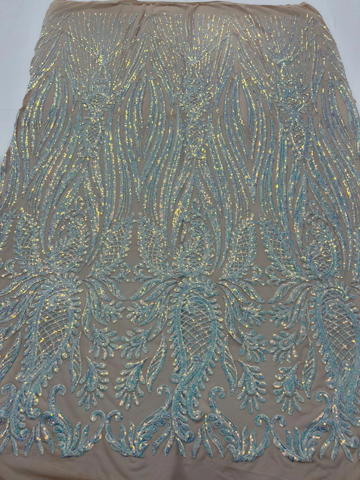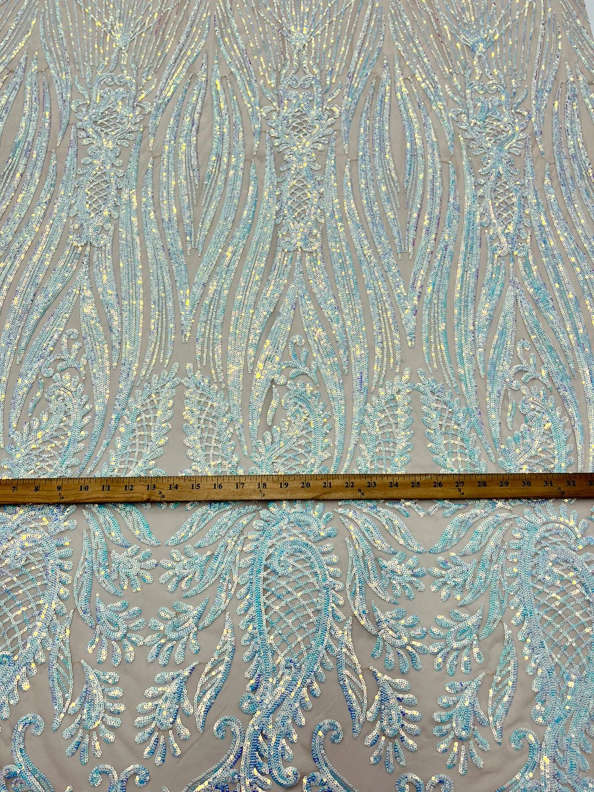 Key Features “Geometric 4 Way Iridescent Baby Blue Sequins Embroidery Fabric”
