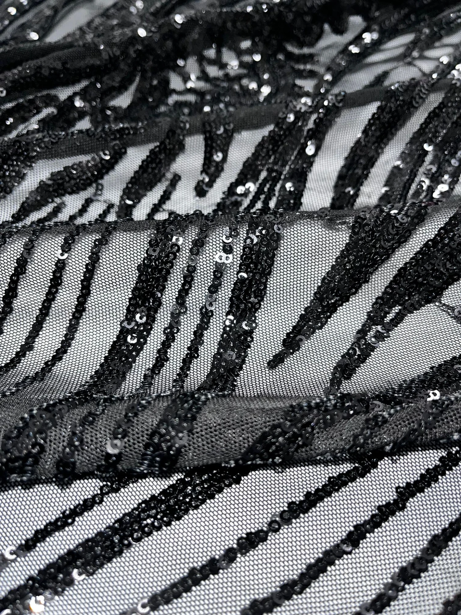 Key Features “Geometric 4 Way Black Sequins Embroidered Stretch Fabric”