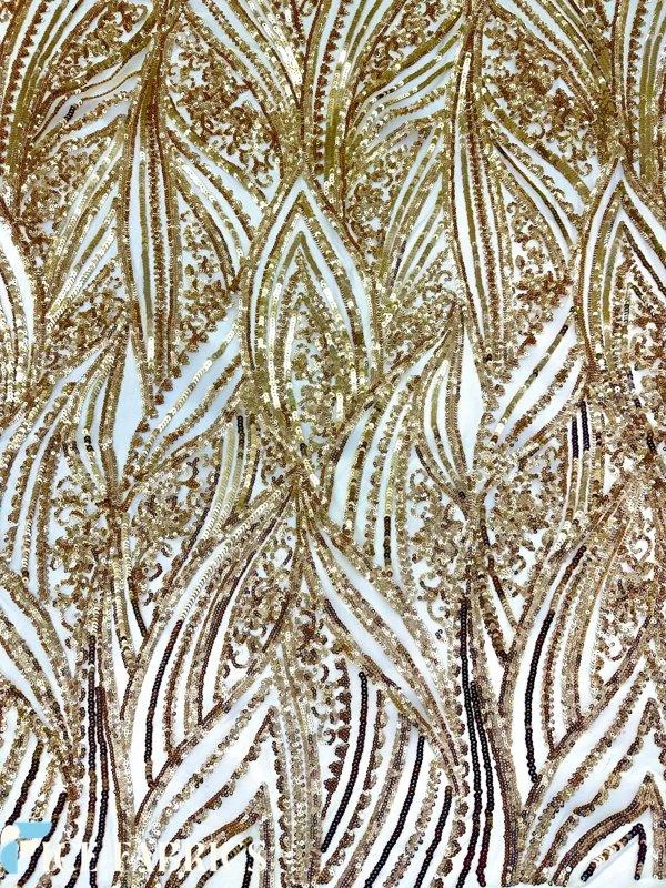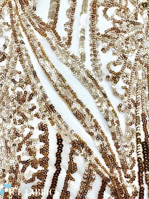 Add elegance and sparkle to your designs with the Gold Damask Stretch Sequin Fabric on Mesh. This high-quality sequin fabric blends style and comfort to create stunning results for any occasion. Whether you’re crafting an evening gown, a party dress, or decorative items, this fabric provides both beauty and functionality.
