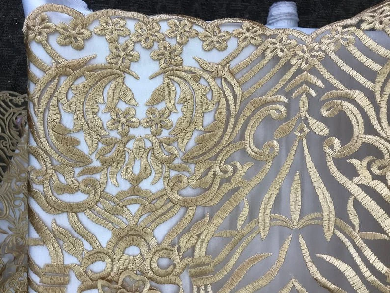 FAQs About “Gold Embroidered Wedding Designed Beaded Mesh Lace“