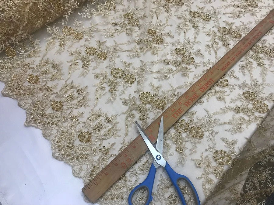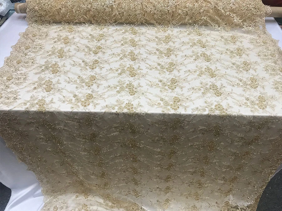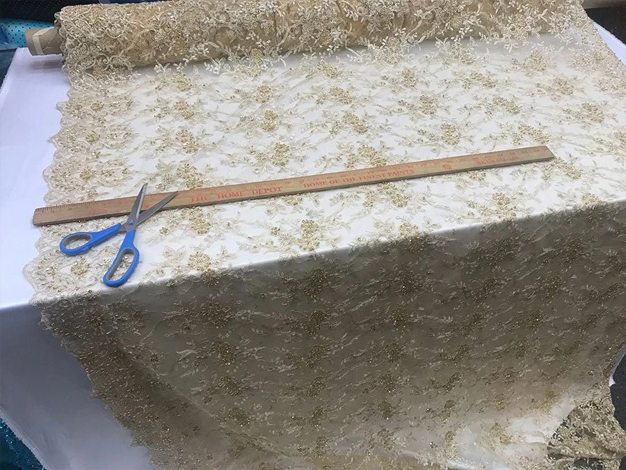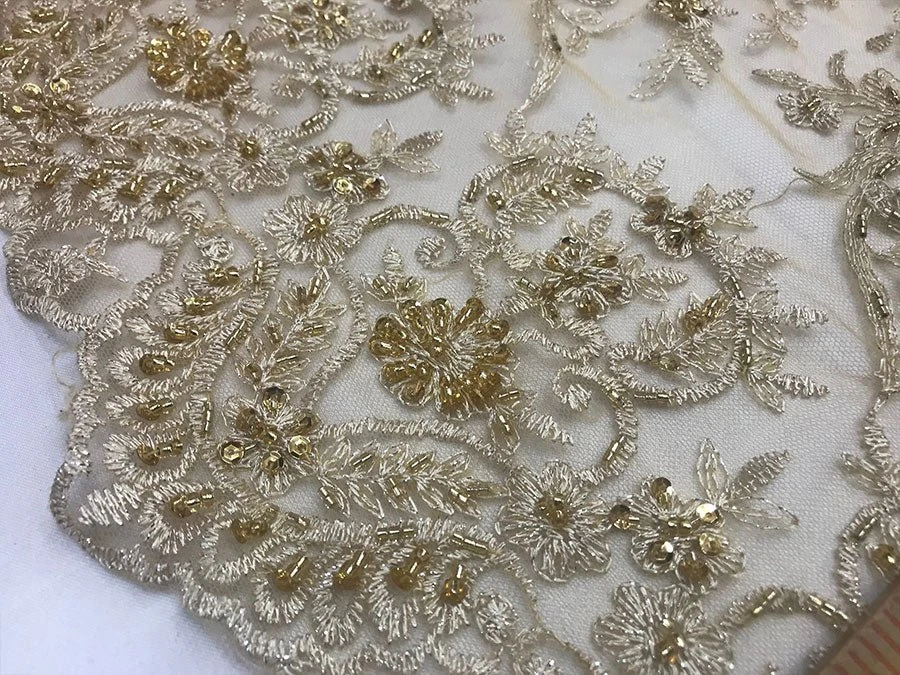 Key Features “Gold Embroidered Bridal Beaded Mesh Lace Fabric”
