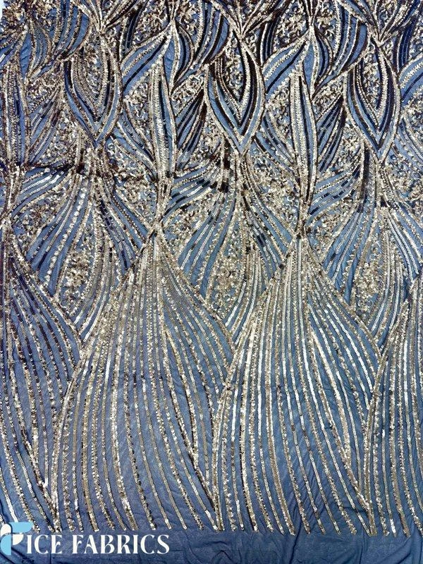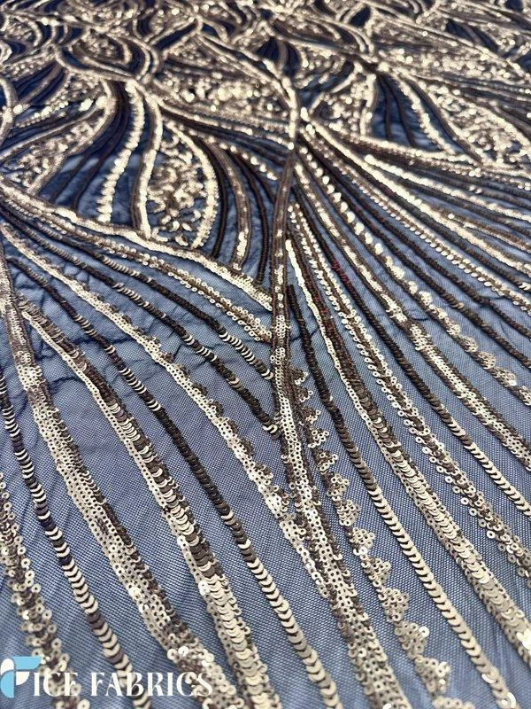 Add elegance and sparkle to your designs with the Gold on Black Damask Stretch Sequin Fabric on Mesh. This high-quality sequin fabric blends style and comfort to create stunning results for any occasion. Whether you’re crafting an evening gown, a party dress, or decorative items, this fabric provides both beauty and functionality.