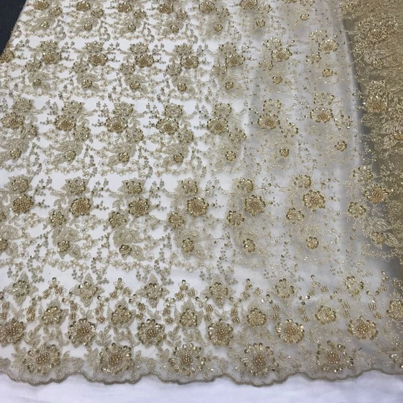 Key Features “Unique Design Gold Embroidered Beaded Mesh Lace Fabric”