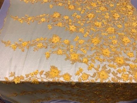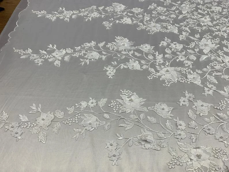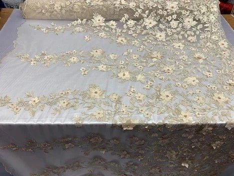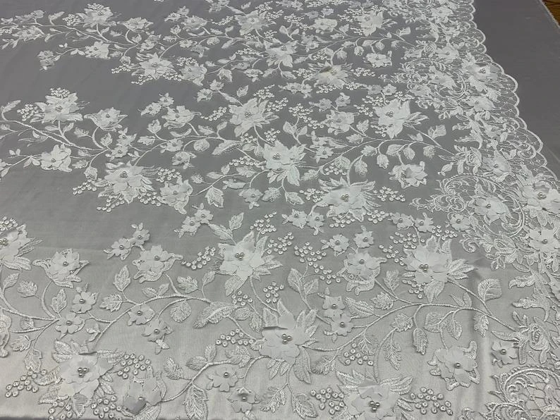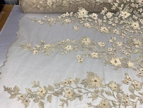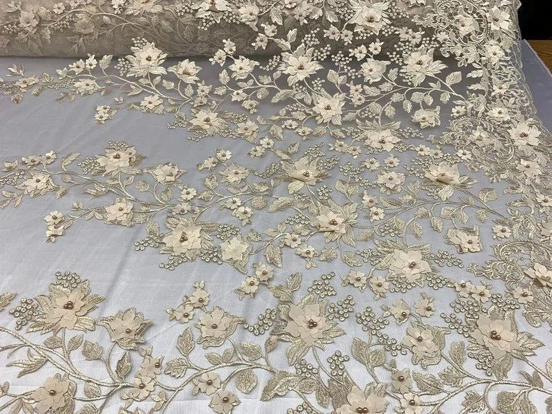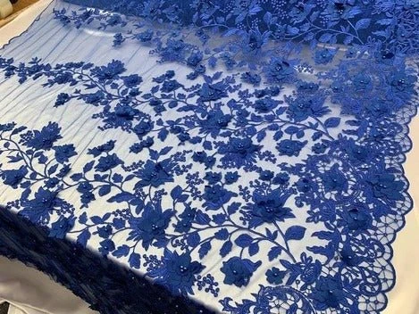 IceFabrics offers “High-Quality Handmade 3D Flowers Design Embroidered With Beads And Pearls Beaded Mesh Lace Fabric” in unique size and color.