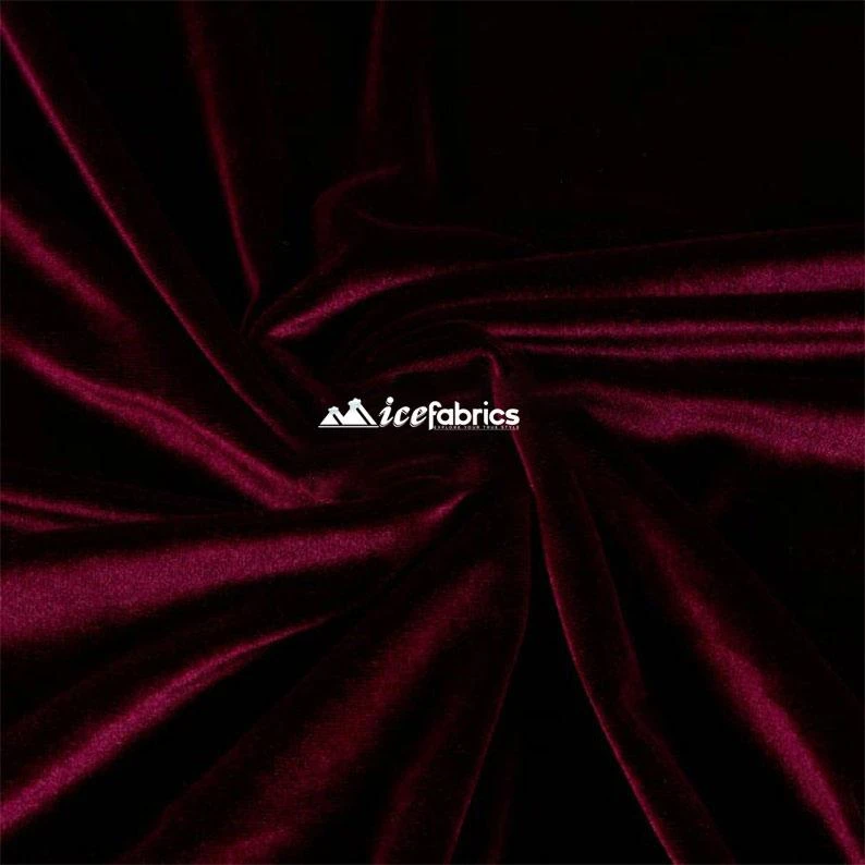 Stretch Burgundy Velvet sheer rich look, dresses, and other clothing made from stretch velvet fabrics are the preferred choice for Evening dresses, formal wear, and wedding gowns. Not only that, it’s an ideal choice for Upholstery, draperies, accessories, cushions, blankets, curtains, and many more.