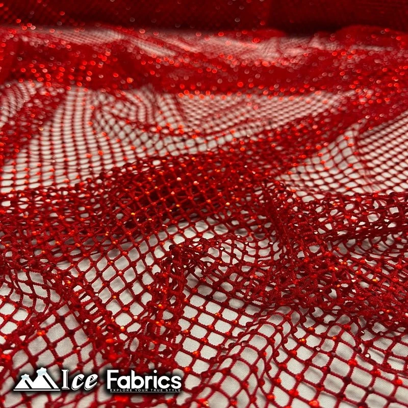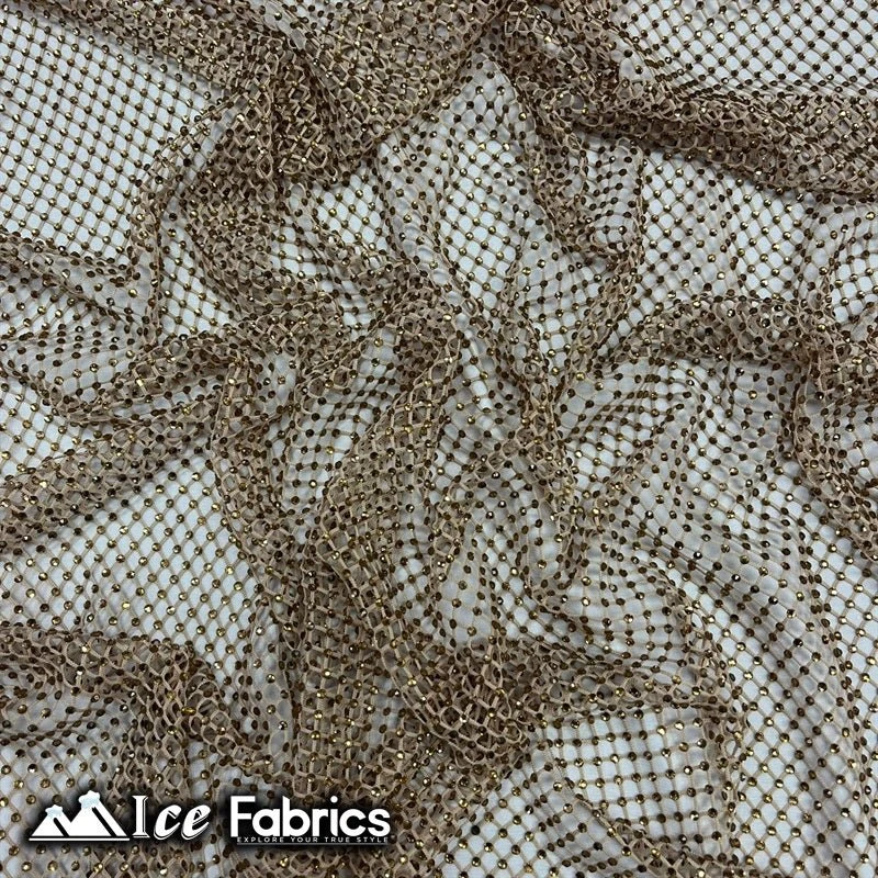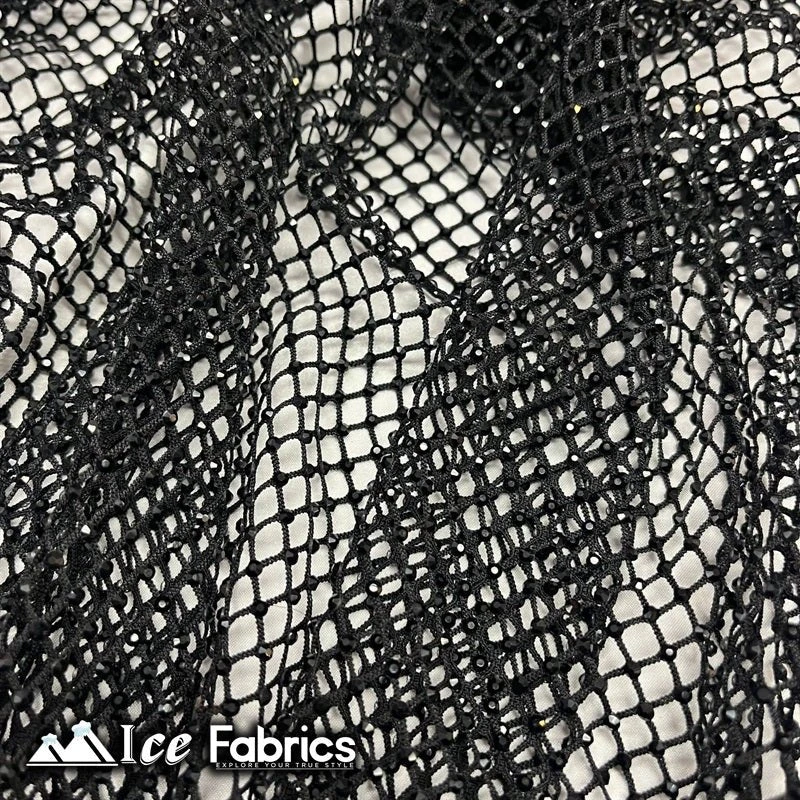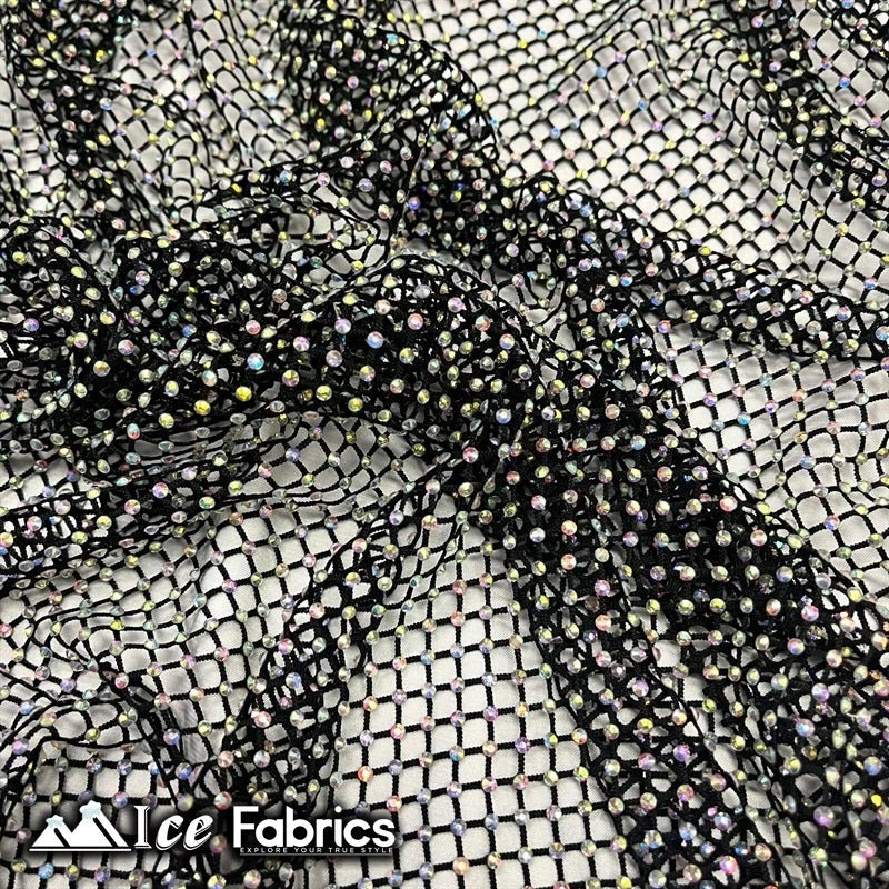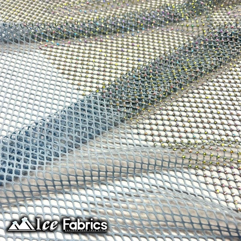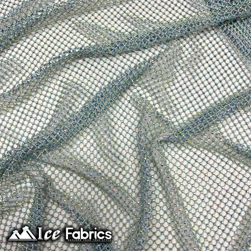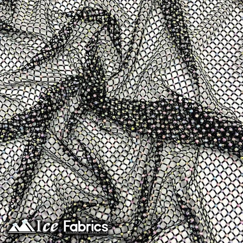 Ice Fabrics offers Iridescent Fishnet Crystal Beaded 4 Way Stretch Fabric in unique size and variant colors.