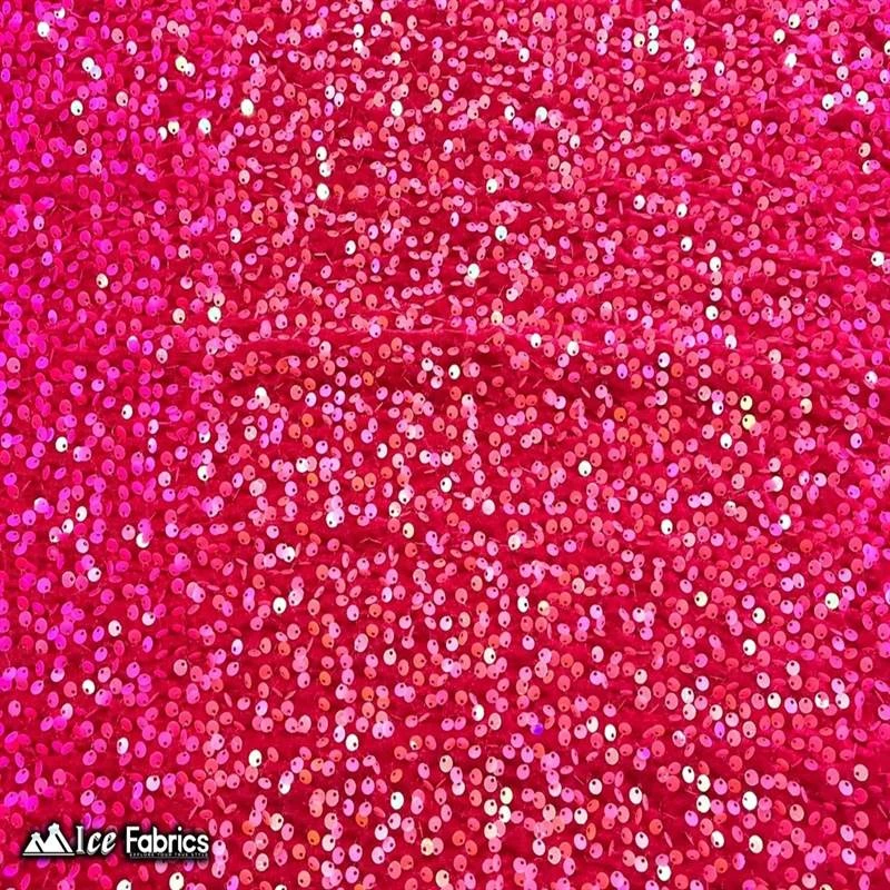 Add a touch of oomph to your look with this Iridescent Hot Pink Emma Embroidery Sequins on Velvet Fabric. This gorgeous velvet fabric is perfect for wedding, prom, and ballet wear.