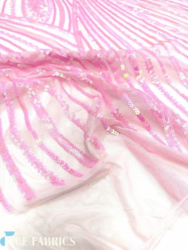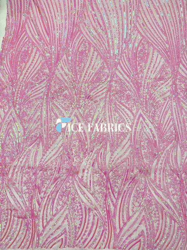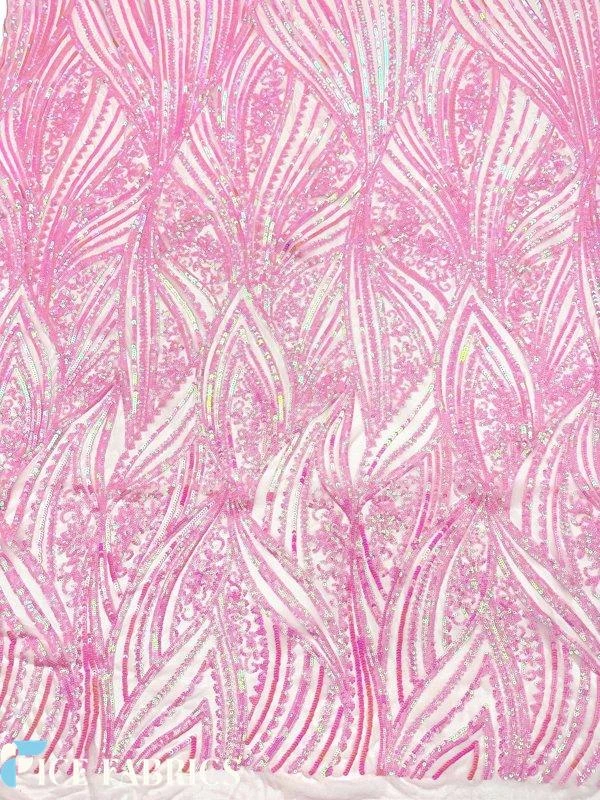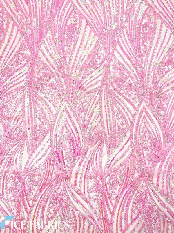 About Iridescent Pink Damask Stretch Sequin Fabric