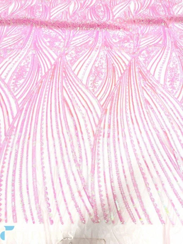 Why Choose Our Iridescent Pink Damask Stretch Sequin Fabric?