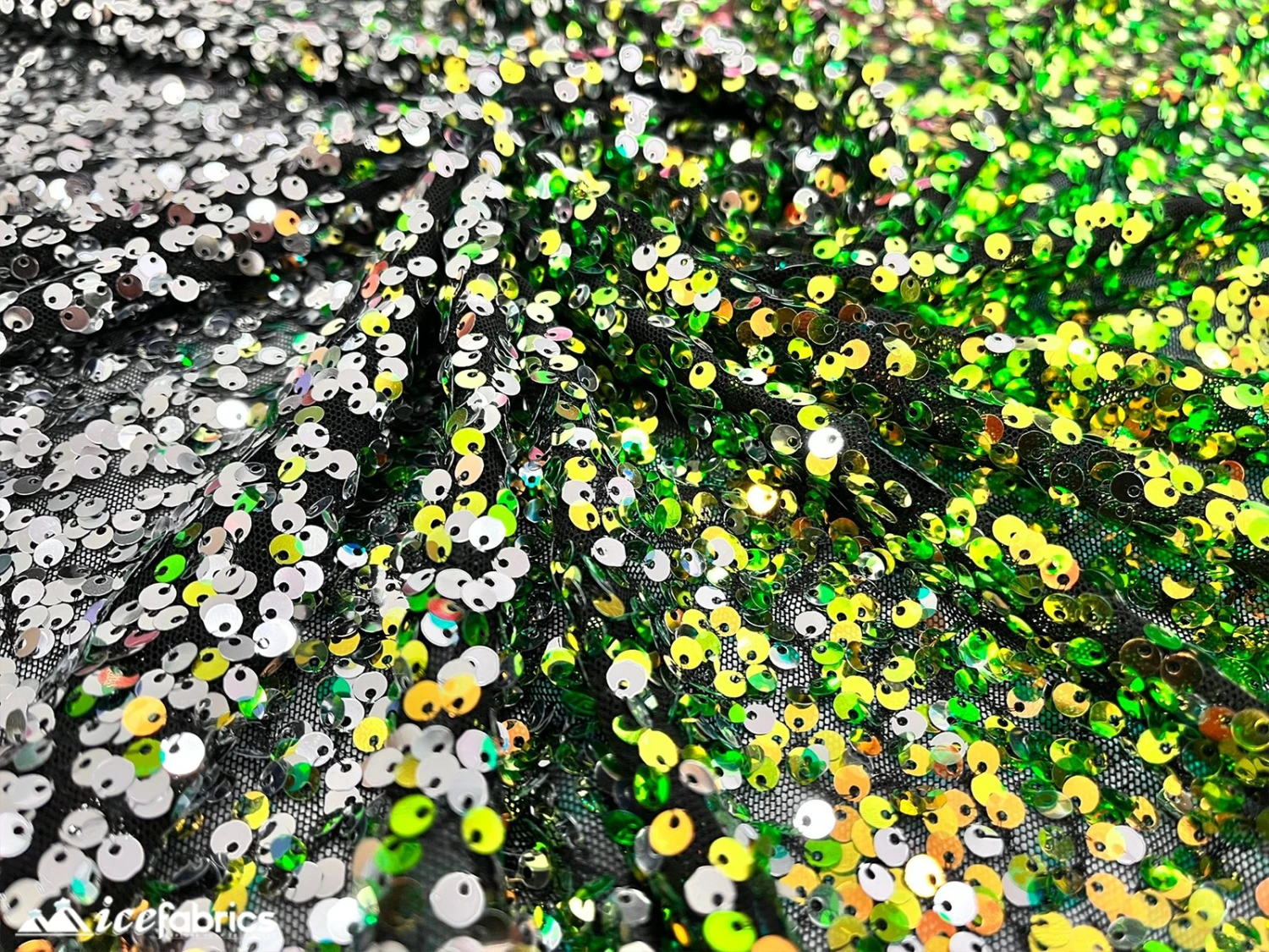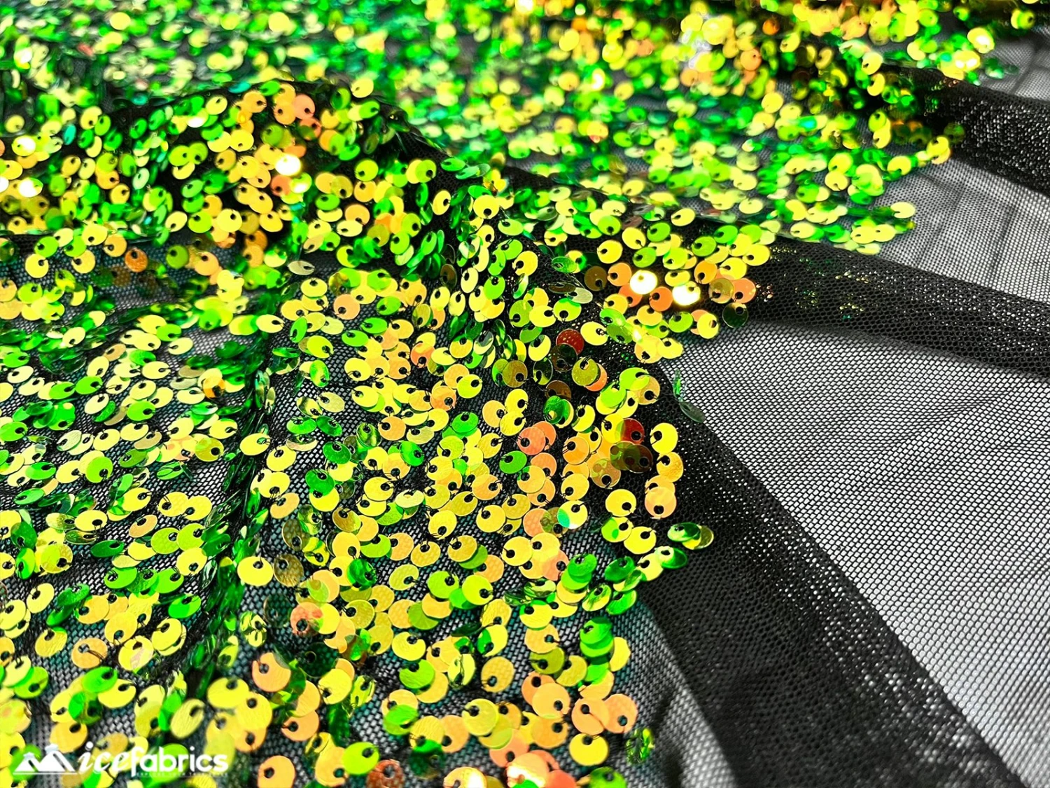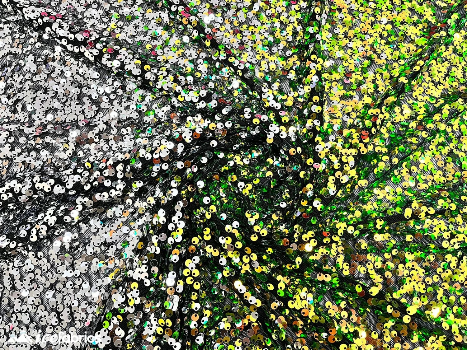 Read more for Iridescent French 4 Way Stretch Sequins On Spandex Mesh Fabric.