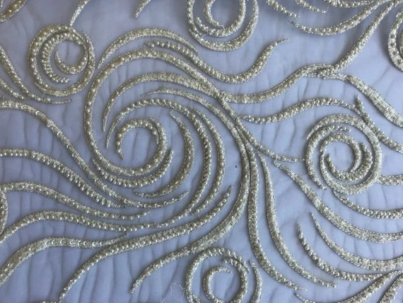 Ivory beaded floral bridal lace flower very soft hand feel, available in just 1 color it is available with standard quality at IceFabrics you can shop fast online. It is accessible all over the world you can order any time because 24 hours service we are offering for the buyer’s accessibility.