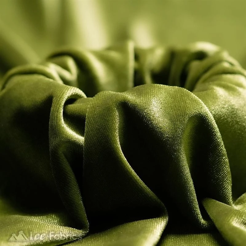 IceFabrics offers “Ice Fabrics Stretchable Light Olive Green Wholesale Velvet Fabric” in variant colors and unique size.