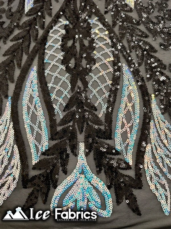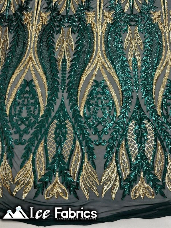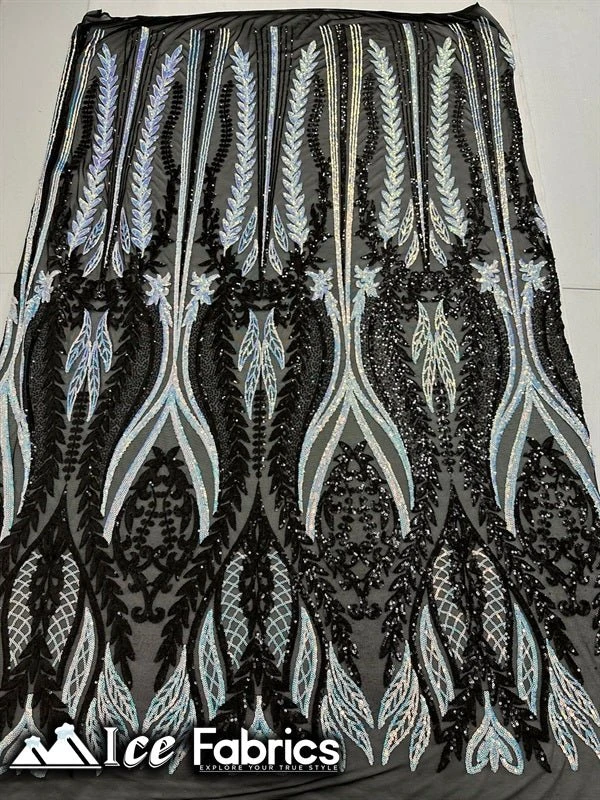 Ice Fabrics offers Lucy Damask Embroidery Sequin Fabric on Spandex Mesh in unique size and variant colors.