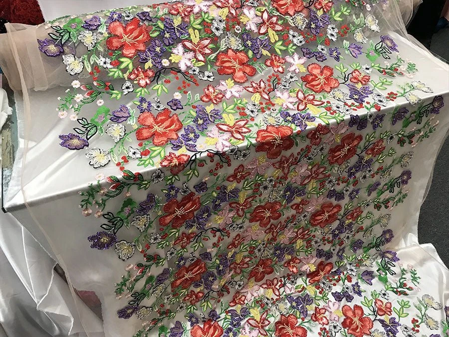 FAQs About “Multi-Color Bridal Beaded Mesh Lace Fabric“