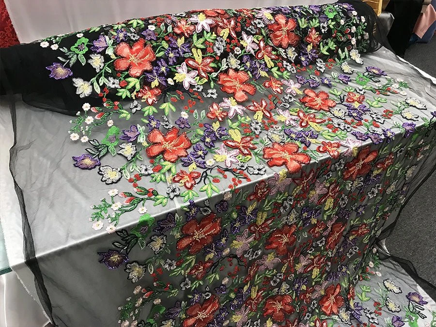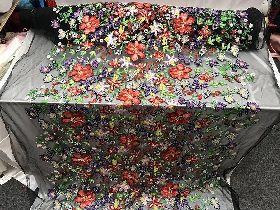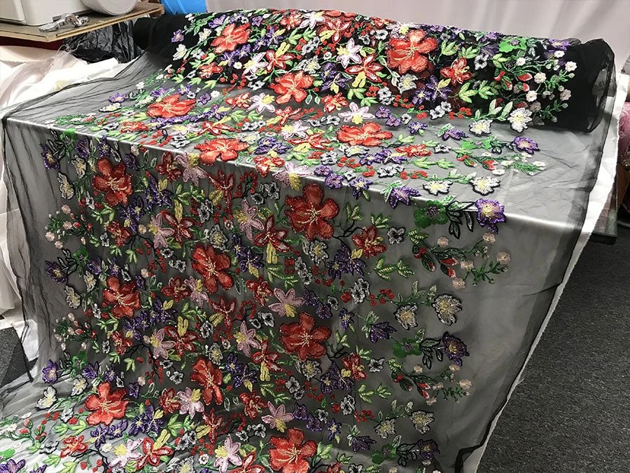 FAQs About “Multi-color Flowers Embroidery Beaded Mesh Lace Fabric“