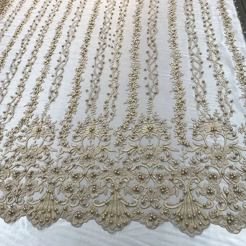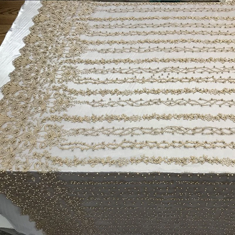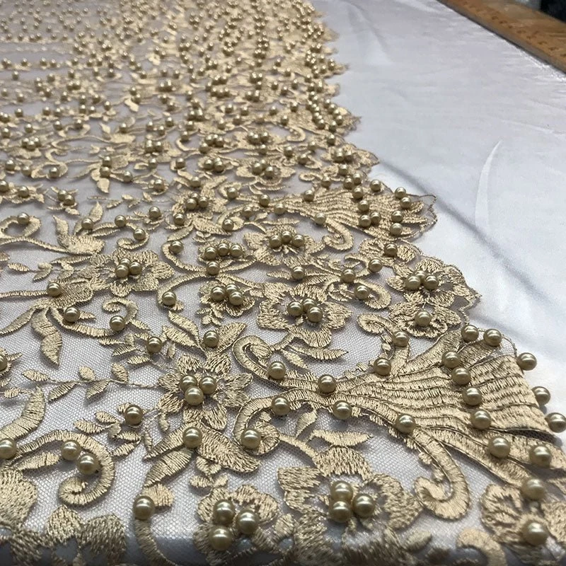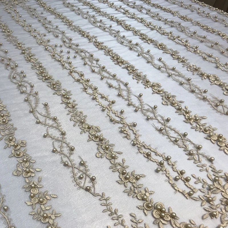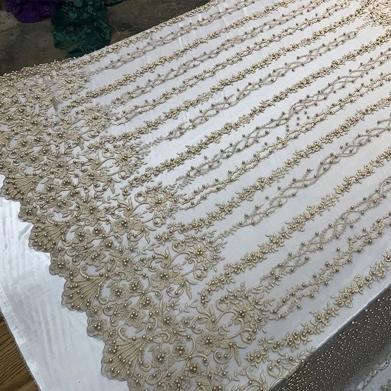 Make your dream dress to get a gorgeous look. We are offering exclusive and fashionable beaded mesh laces fabric. We are concerned about your desires and assist you to find heirloom clothes. Achieve your daydream by taking our high quality embroidered Beaded Mesh fabrics to look striking and get admiration from the guest. Beaded lace is pleasing trends this season for you. When we talk about weddings there many beaded lace designs for you as 2020 Laces Embroidered and beautiful beaded mesh lace, while lace and colors are top of the list when it comes to the must-have features brides want to see in a high fashion wedding dress. For the party our beaded lace dresses or pretty floral dresses that are perfect for bridal showers, brunch parties, and birthdays and special for you and your girls.