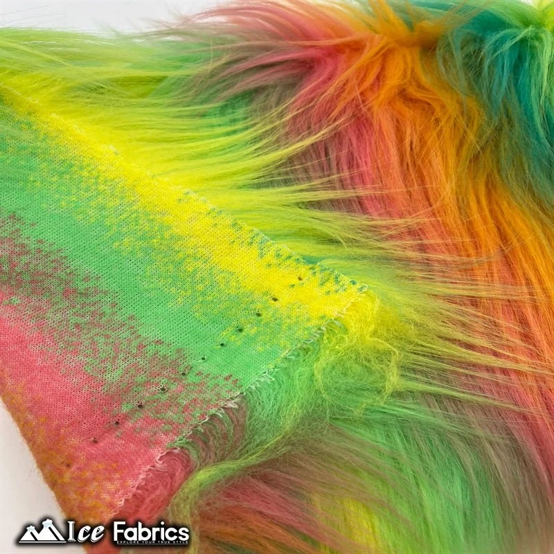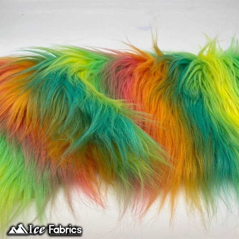 Make your winter outfits amazing and cuddle your body with this Multicolor Green Orange Mongolian Long Pile Faux Fur Fabric that is perfect for cold temperatures. It is a versatile, durable, and warm item available at Ice Fabrics wholesale.
