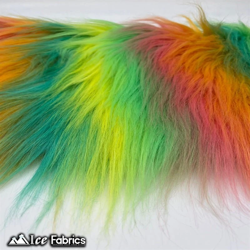 Multicolor Mongolian Long Pile Faux Fur Fabric