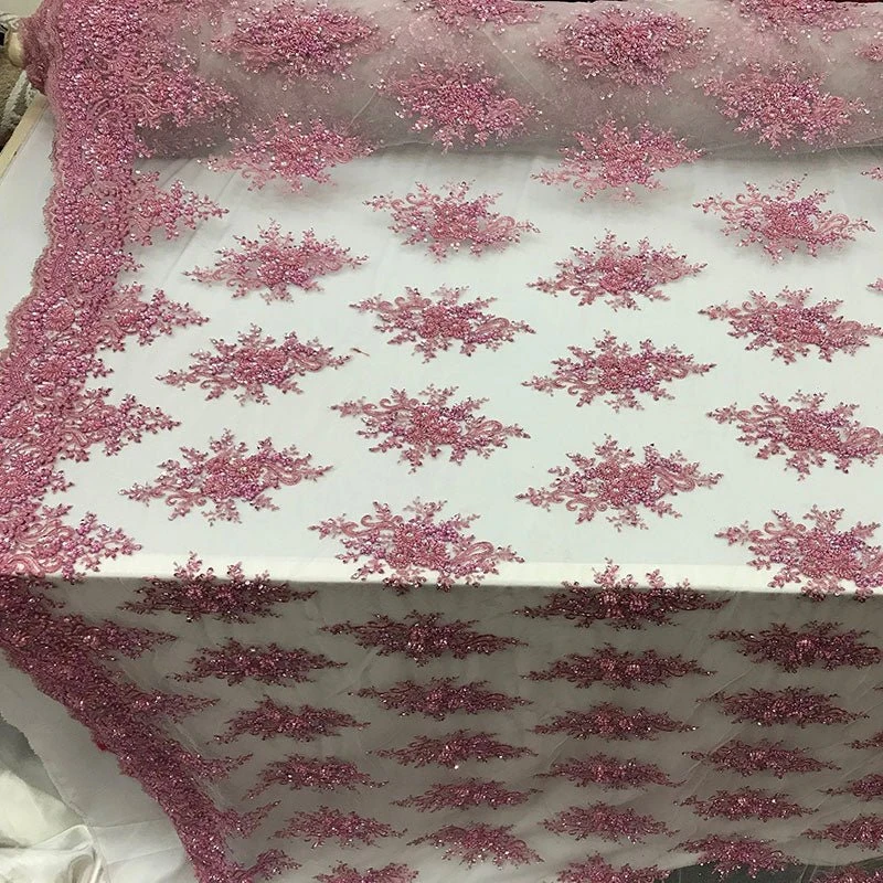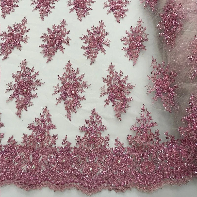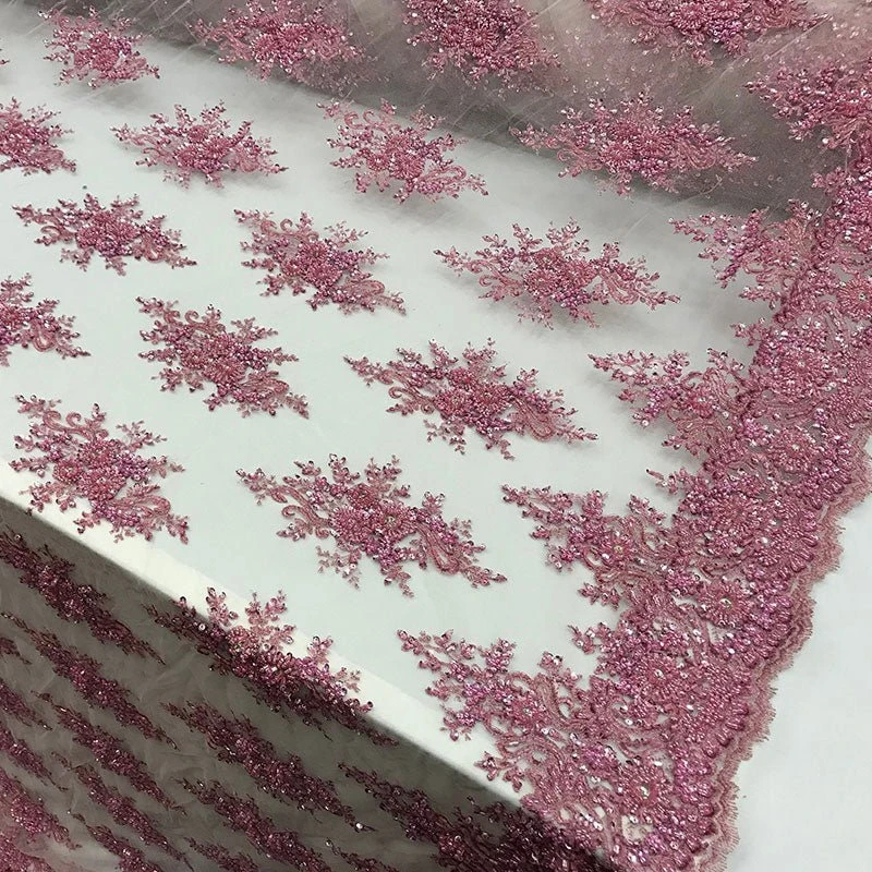 New French Beaded Handmade Embroidered Mesh Lace Floral Fabric