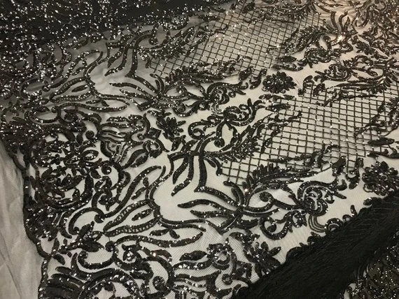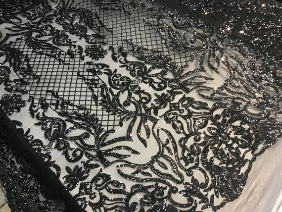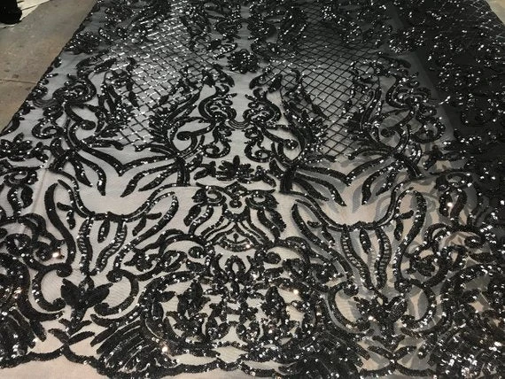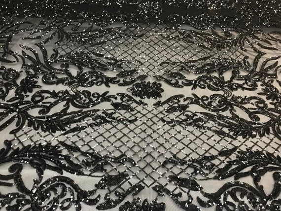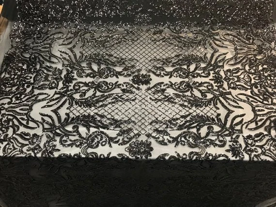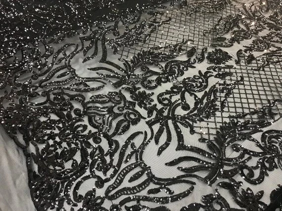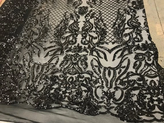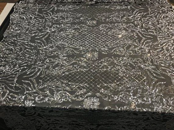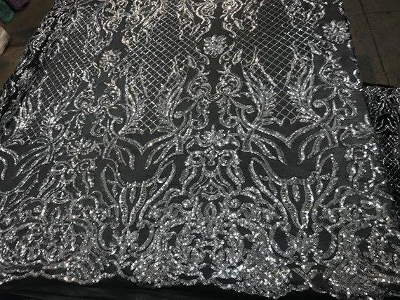 New Design 4 Way Stretch Sequins On A Mesh Lace Fabric